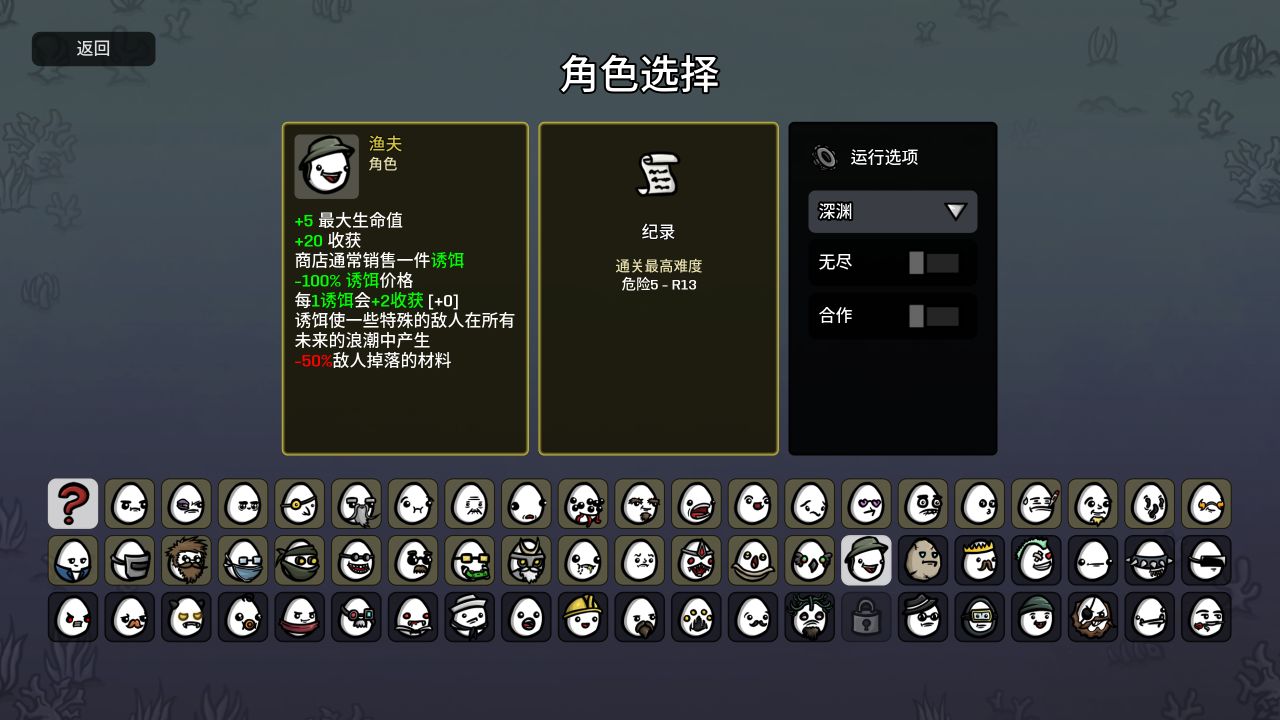 这个角色最适合玩矛,因为矛具有贯穿效果,当我们拿了多个鱼饵时,虽然特殊敌人很多,但是因为矛是贯穿的,所以即使有问题,也可以很快的一顺溜全扎死