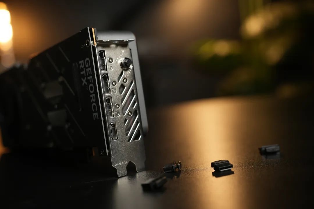 3个DP 2.1b+1个HDMI2.1b接口,视频接口左上方的小按钮可实现一键超频。