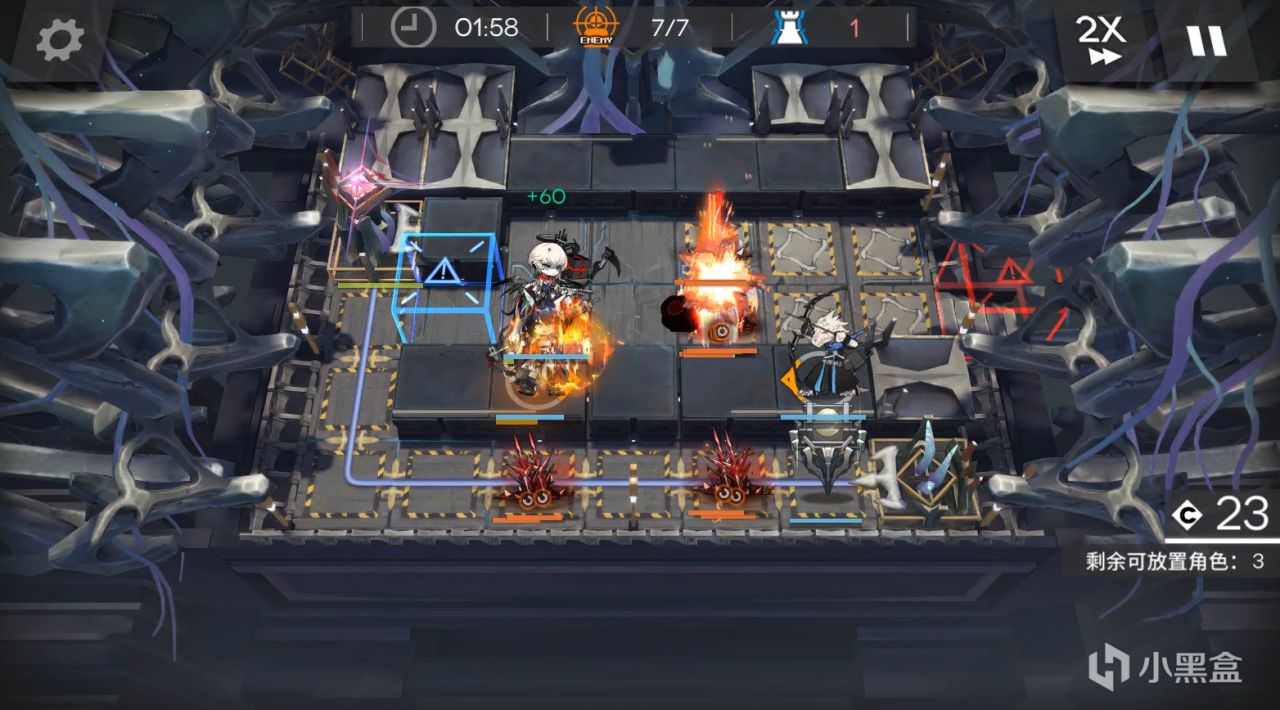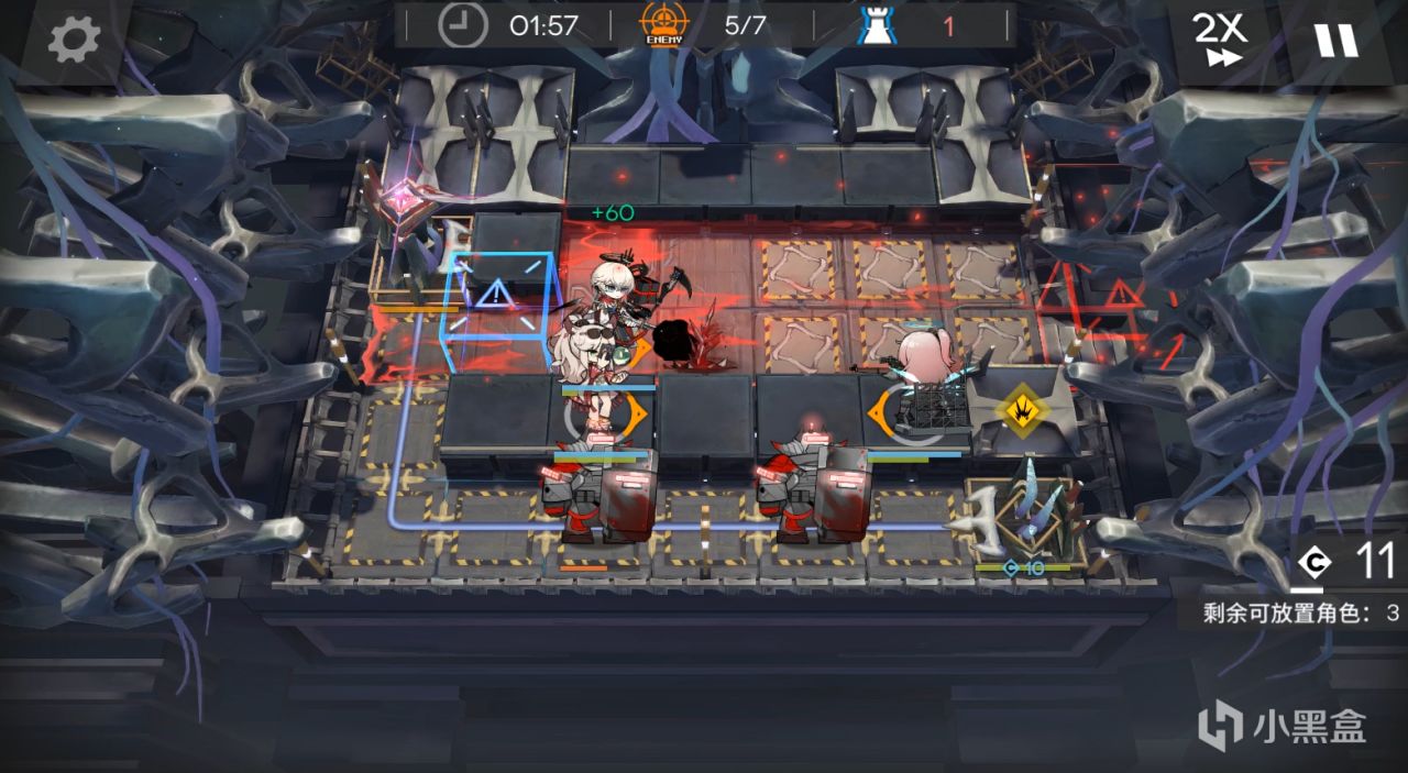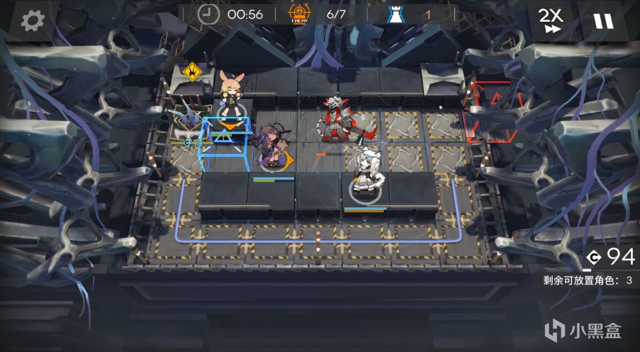 可换其他重装+法伤干员。满级的蛇屠箱和深靛,都带2技能,未专精。2人都是技能好了就开,练度溢出。