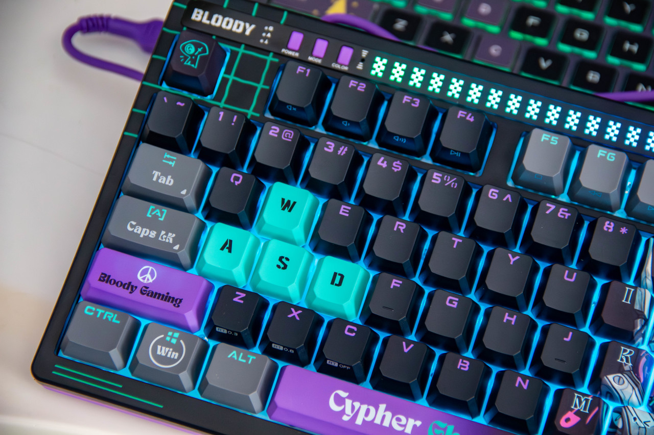 WASD是四颗自带的镁合金键帽,对比PBT键帽重量更轻,但是强度更强,能更敏锐察觉轴体的回弹。