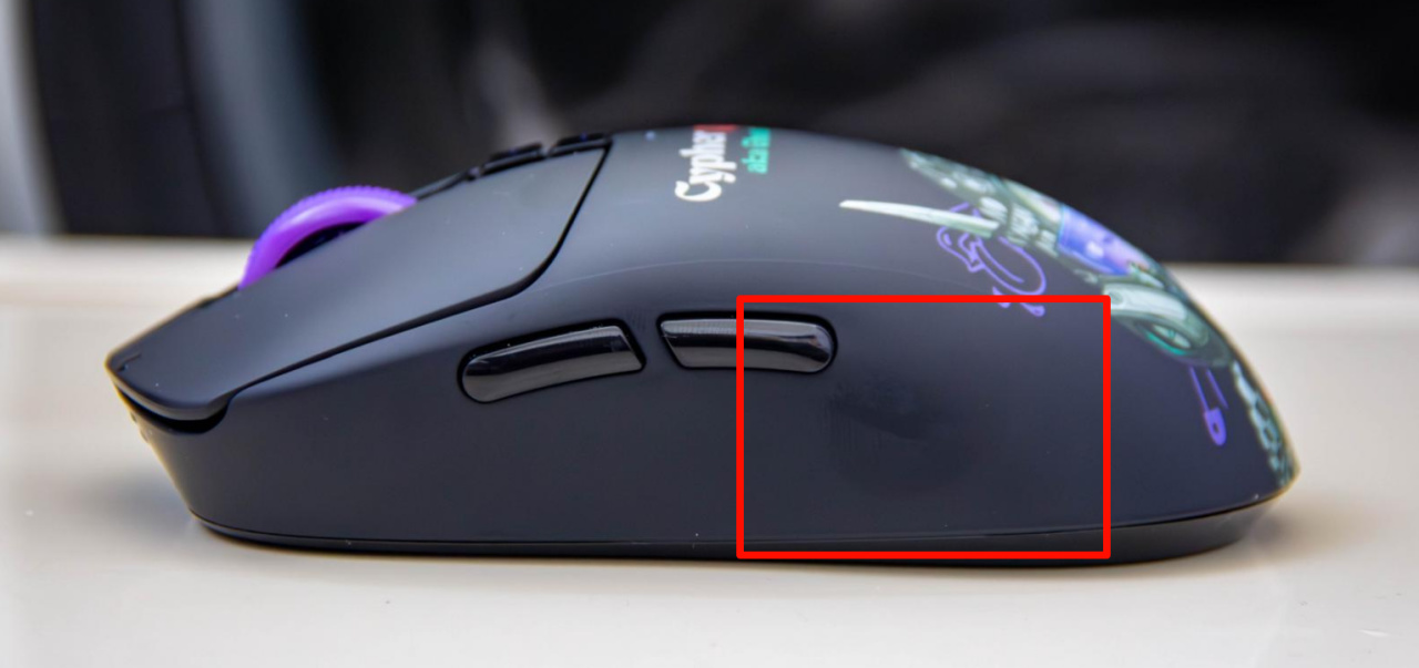 侧裙收腰幅度小,大拇指和无名指小指抓握提供的掌控力并不会很强。所以这个鼠标更多是以稳定输出为主,类似卓威U2.