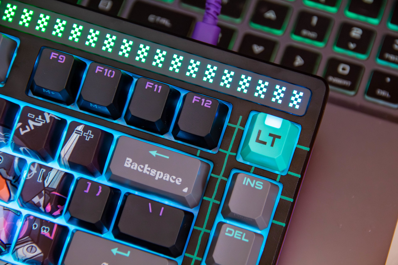 这个键盘有灯光,但是没有RGB灯光。唯一的RGB就是上面的拾音灯条。可以根据周边环境的音量变化而去变化。当然也可以把这个灯条当成常亮的呼吸灯,这对没有灯光的阿尔法光轴来说可是不可多得的“奖励”。