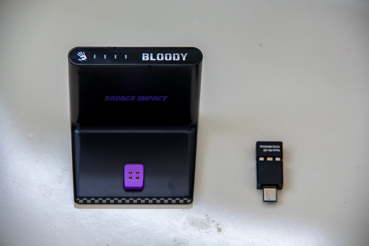 接收器方面,底部的设计跟卓威类似,都是为了配合基站,脚贴做了避让,同时是用的触点连接,磁吸和限位卡扣固定。并且,这个鼠标不一定纯靠基站传输信号,还自带有有Nano接收器,也有独立的接收器收纳仓。然后,Nano接收器+有线+基站,一共三模,所以没蓝牙模式。不太合适给轻薄本用。
