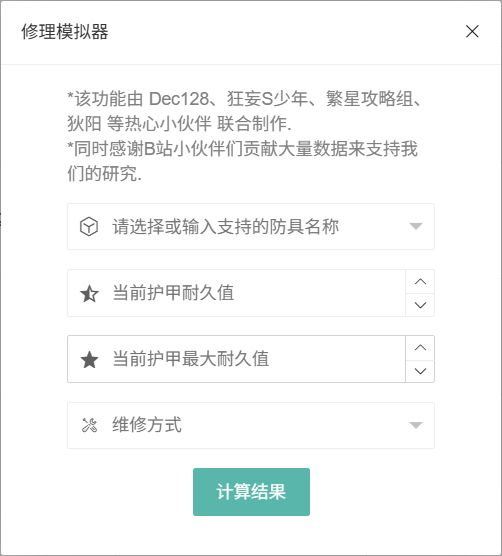 雖然算法保密,但計算程序是有的。目前護甲維修模擬程序已經登錄B站up主Key725 的KK日報。
