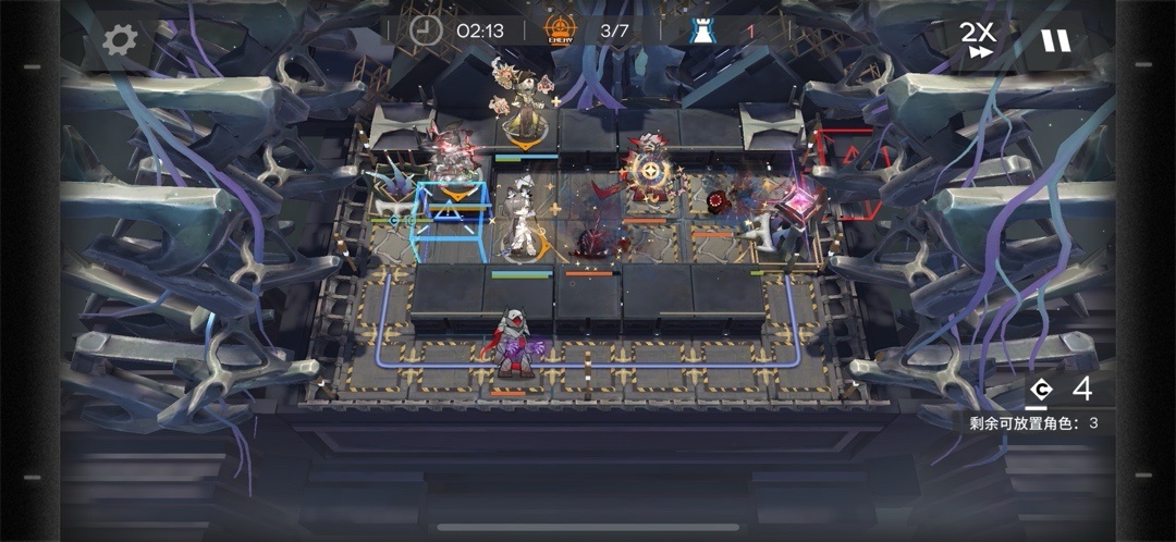 装置出了四月攻击范围就撤退四月,重部署到以下位置继续打装置