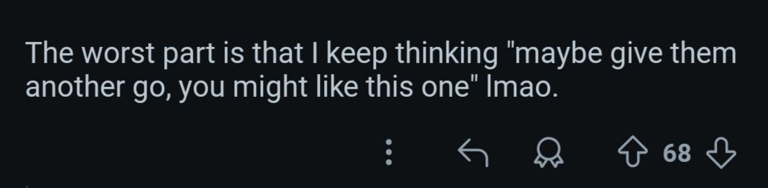 “最糟糕的是,我還老是想着‘說不定再試一次,我就會喜歡上了’,笑死。”