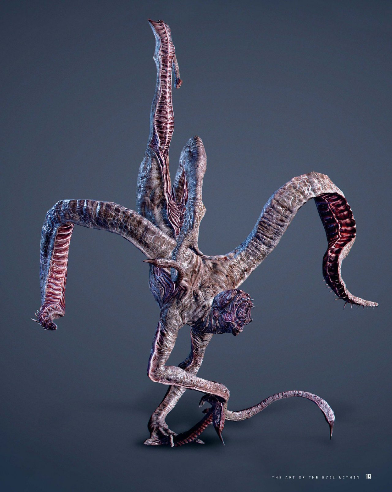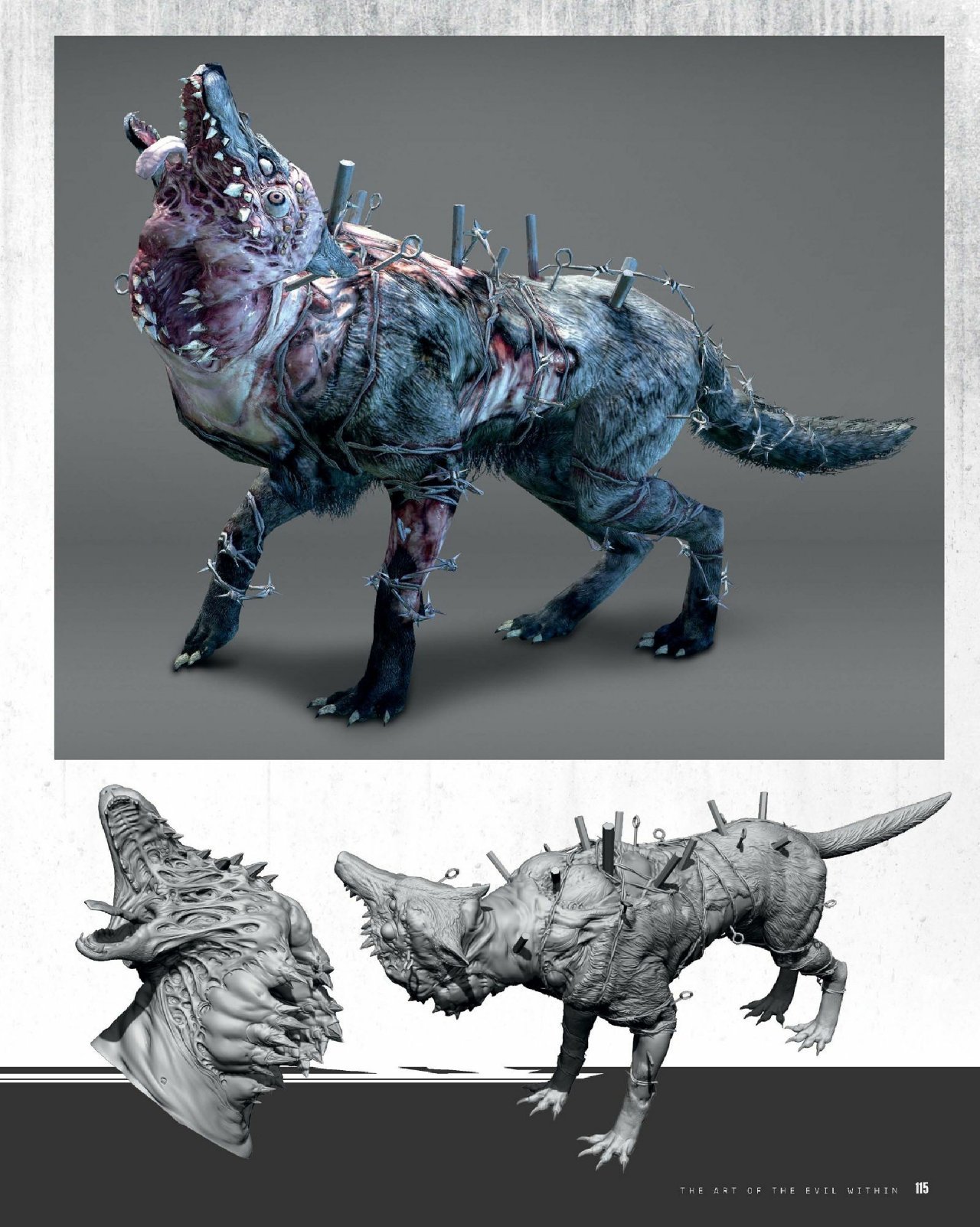 在初版设定里,是一个无脊椎动物,四肢也更偏向虫类特征一些。看图内展示貌似还能像半条命2抱脸虫那样操控人类当主脑,但最后估计是肢体技术原因较难实现,于是还是设计为了偏向狗的形象。