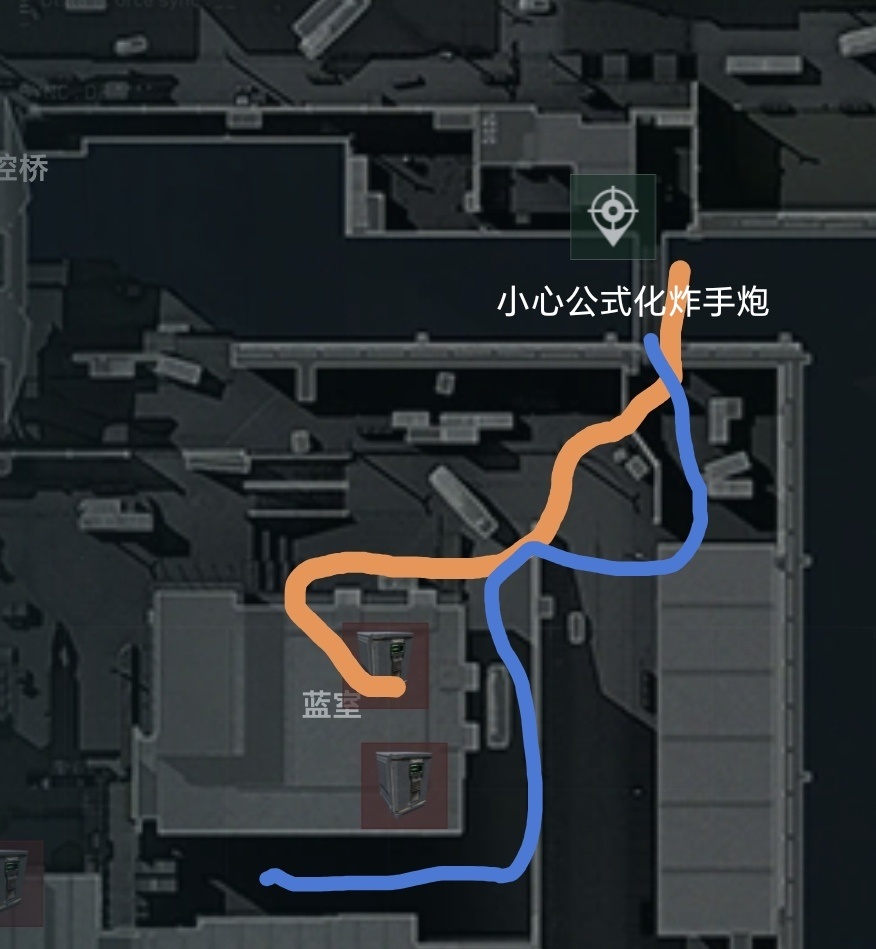 没什么好讲的就是如果对面开桥但又不想打对面是话可以从黄线位置跳下去绕道离心机室,离心机室如果西区大门没有开卡的话一般不会有人的。没有开桥就可以一路跑到黑室爽吃航空箱和小保险,黑室进门航空箱旁边货架下会刷火箭燃料,大厅中间高级储物箱的平台上也会刷火箭燃料。不过这里有点风险就是可能被员通的人直接冲过来打架给人逮捕。