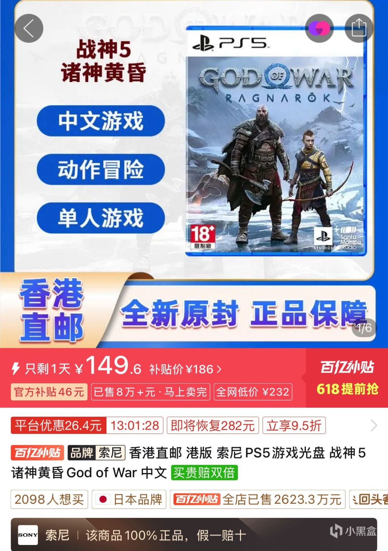 3.PS5游戏《战神5诸神黄昏》港版中文149.60元全新包邮,索尼第一方工作室3A大作,属于PS5必玩游戏,想收藏实体版的朋友也可以收一张,现在价格还行。