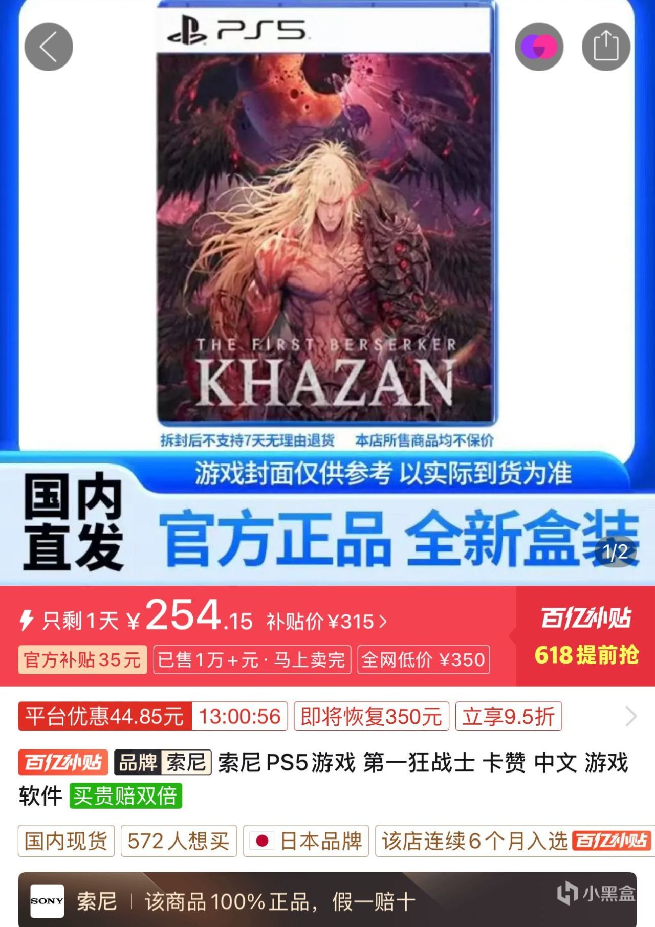4.PS5游戏《第一狂战士:卡赞》韩版中文254.15元全新包邮,目前价格还行,对韩版游戏封面不感冒的玩家可以入手,觉得还是贵了可以再等等,看看618时候会不会再刷出史低价。