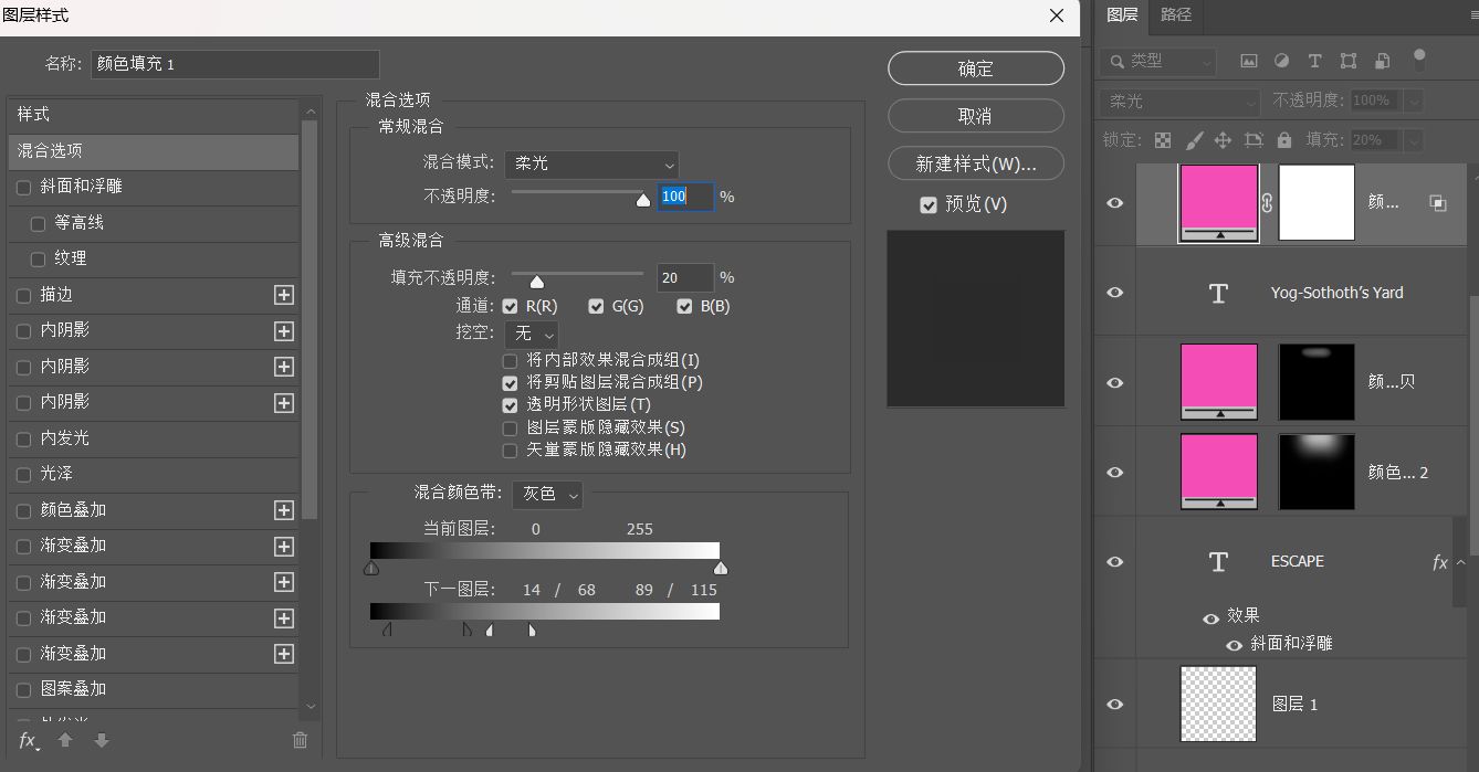 9.填充一层纯色,混合模式柔光,覆盖在上方,不透明度20