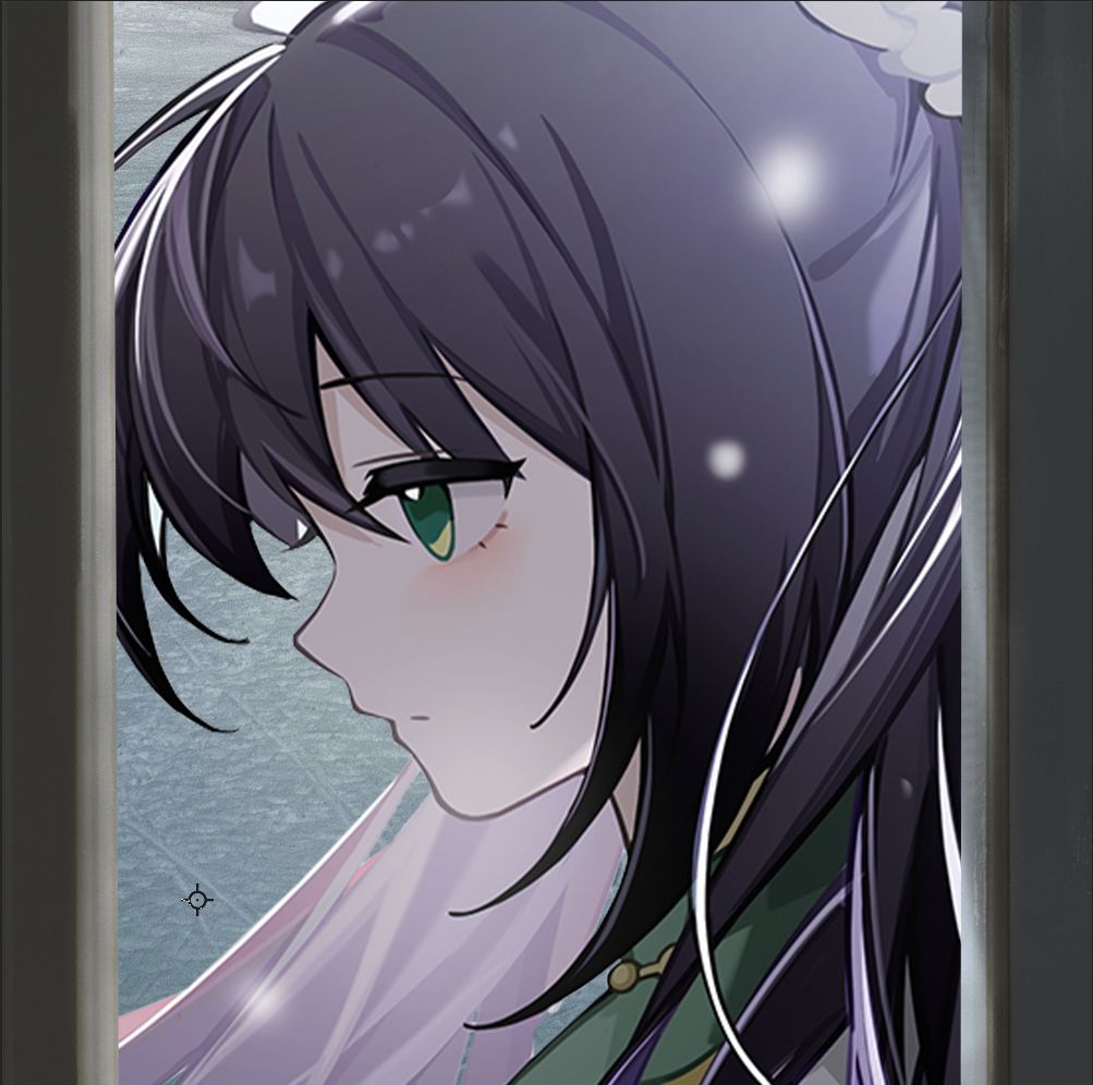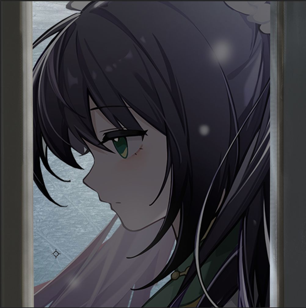 首先分出前中后景,也就是门框、人物以及很平的背景。