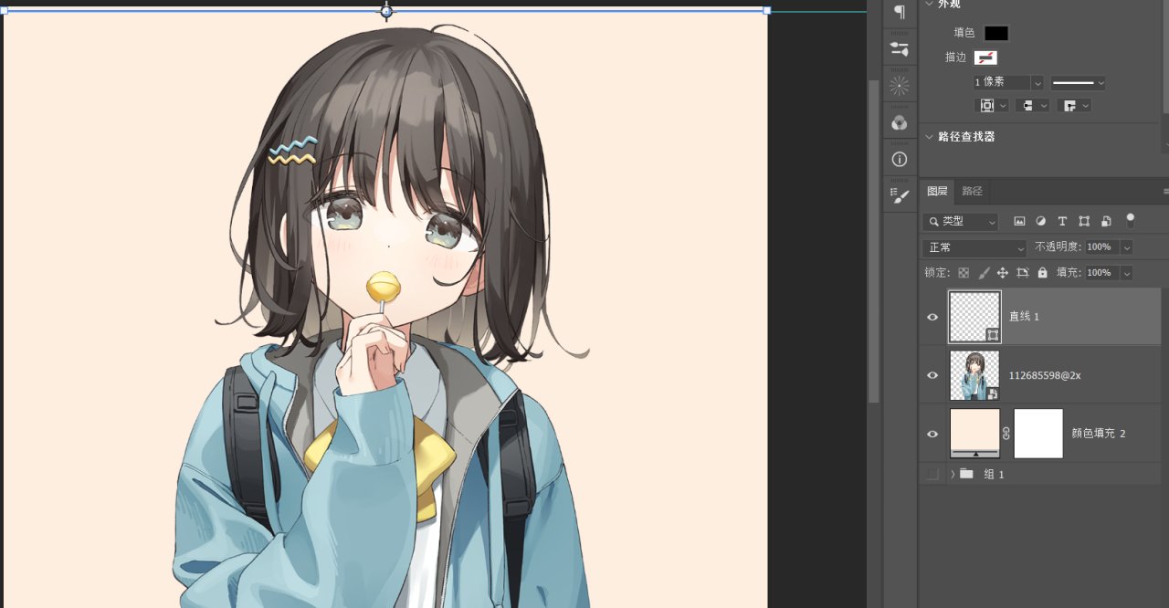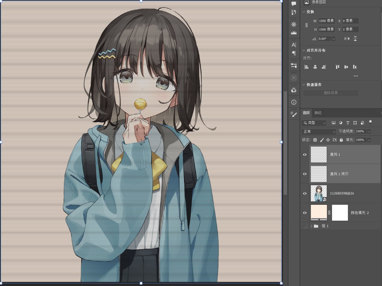 3.一直按Ctrl+Shift+Alt+T,直到直线铺满画面,然后选中全部直线,合并图层,复制一份,位置错开