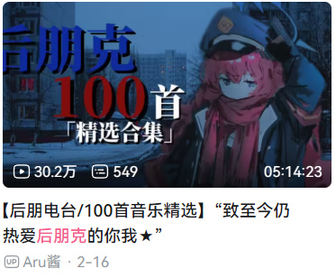 现在不少知名冯克歌曲封面都是动漫大头加滤镜的模式,后朋克视频封面则有很多都是动漫人物融合现实场景。这些封面的好处是制作起来简单方便。