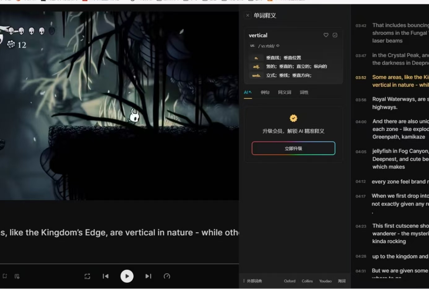 Trancy——浏览器插件,可以为外文视频生成字幕,且点击字幕的单词可以立即获取单词读音和翻译,适合英语学习。