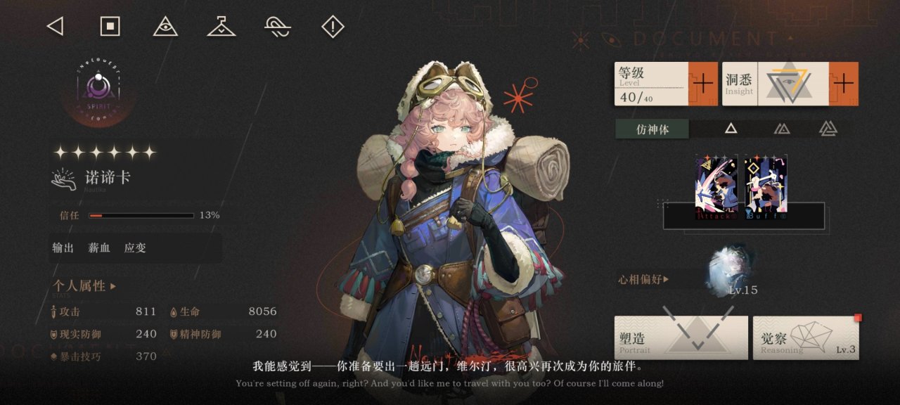 如果是玩過fgo的朋友應該看這戰鬥界面應該會覺得眼熟吧,沒錯,這遊戲的戰鬥和fgo有不少類似之處,回合制,角色之間的相互剋制,合理選擇角色技能牌來戰鬥,而且fgo的充能放到這裏就是角色血條下面的小黃點了,小黃點滿了就能開該角色的大了,不過當然了,回合制戰鬥差不多都是以這些東西爲基礎。