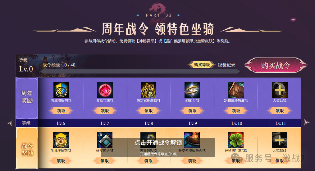 完成周年每日遊戲登錄或參與泰瑞亞甲蟲競速挑戰任務,累積週年戰令經驗,解鎖戰令等級,贏【神祕貢品】、【熊貓翻滾甲蟲-無染色版皮膚】等獎勵!