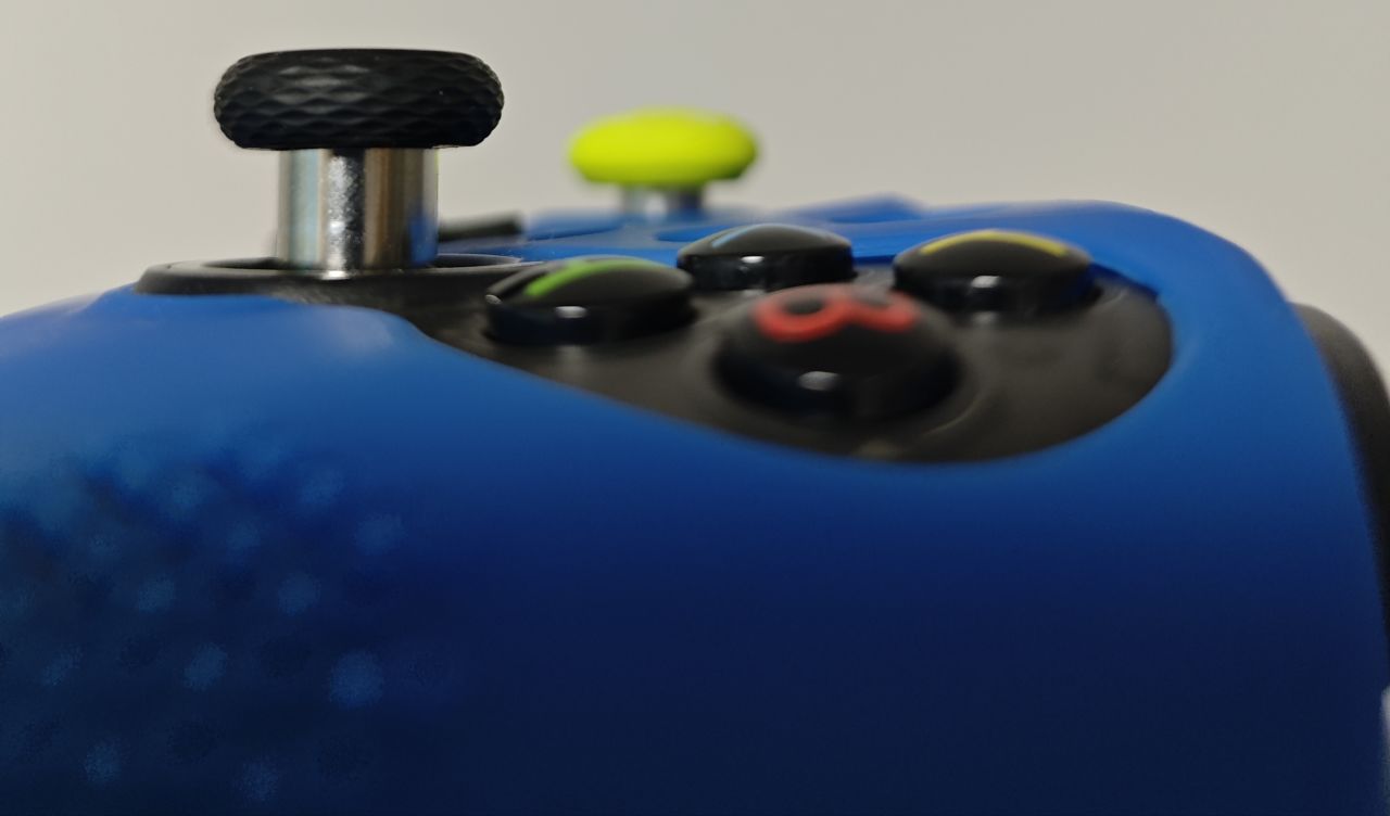 其次我容易出汗,保護套是必須的,但網上沒有墨將彩虹2pro的型號,因此我購買了它的防滑貼版本,再套上一層xbox精英手柄二代的套,剪掉一部分,讓肩鍵露出,持握效果很好,還不影響充電座使用。