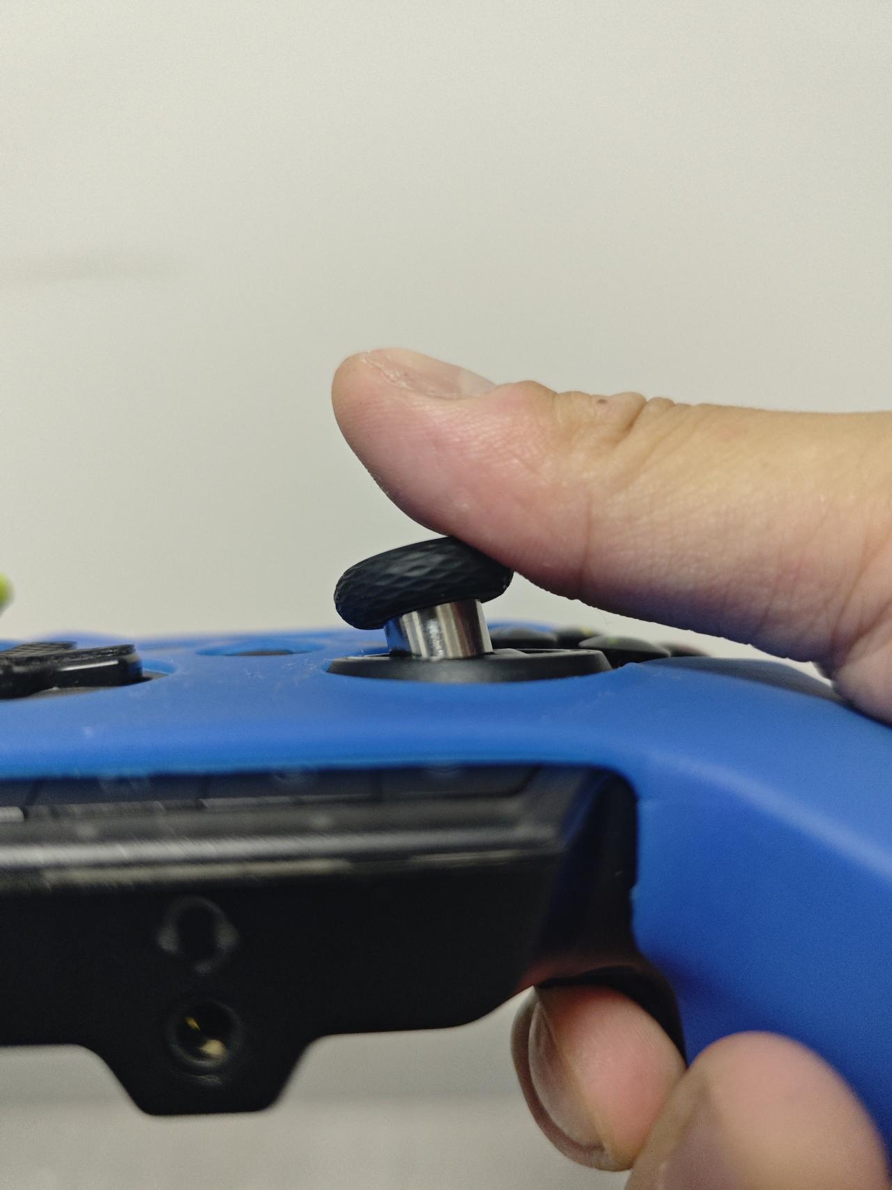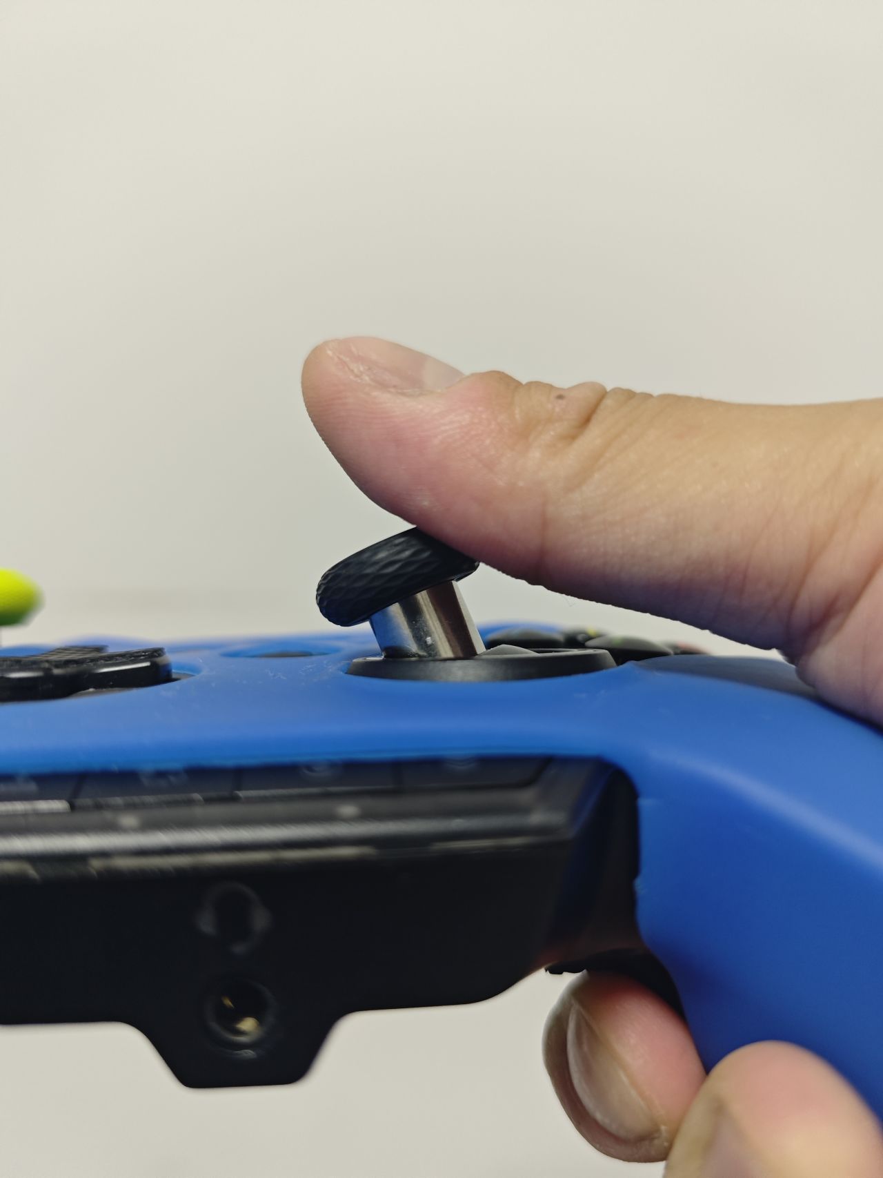 根據食指尖到大拇指尖的距離以及虎口張開幅度大小來找到自己合適的搖桿高度,推到最左邊如果感覺很舒服,即OK。