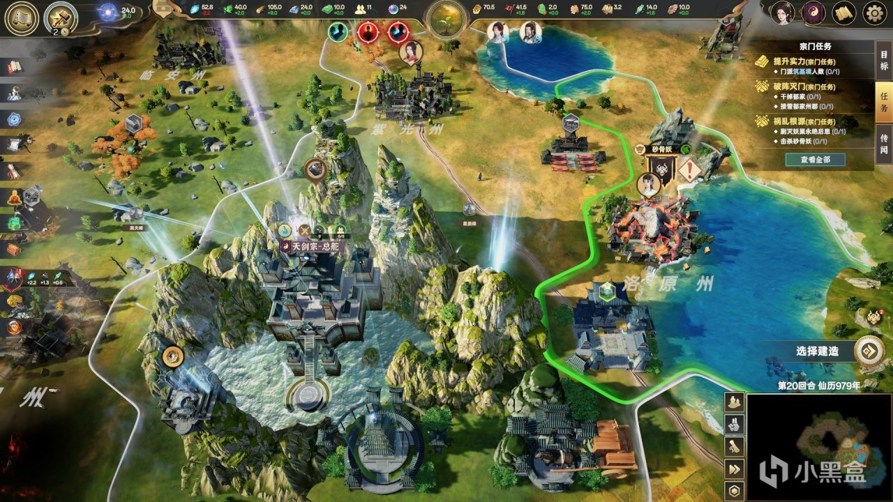 expand(擴張)象徵着“與地鬥”的玄機:4X繞不開資源的管理與運轉,支撐宗門日益強大的承重柱,來源於地塊的持續擴張,具化到《宗門志》中表現爲,你需要持續吸納山門附近的凡人州郡,用你的庇護去換取他們的資源上供和建築支持。