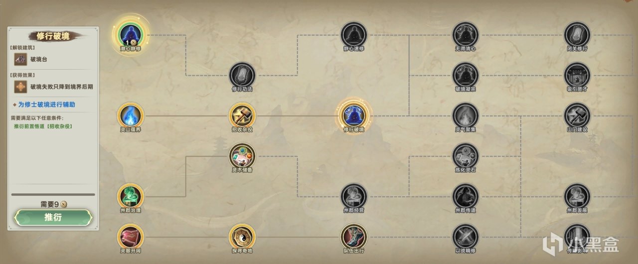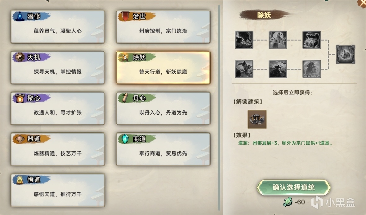 比如遊戲中的科技樹叫做“道統”和“悟道”,前者可以根據自身門派的特性去進階專門的“道統”路線,而“悟道”更像是一個高適用度的萬金油模板,可以根據自身發展的輕重緩急去持續推進各項功能。
