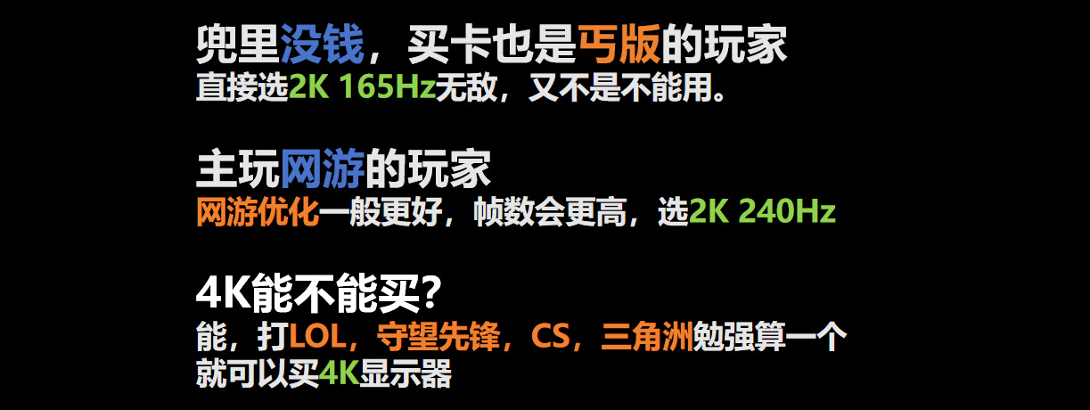 4K顯示器能不能買?能!但是僅限於對配置要求不高的網遊,比如你就打個LOL,或者守望先鋒,甚至Apex和三角洲行動。那我會推薦你試試