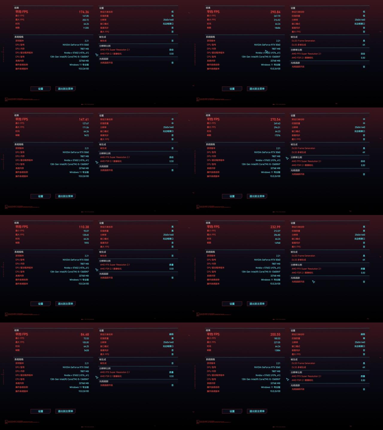 2077不愧是N卡的“親兒子”,針對這代50系顯卡的優化是真不錯,尤其是超高畫質下愣是能跑出84幀的成績,甚至開了幀生成後,全部畫質下突破200幀。這提升已經超過3倍了。非常離譜!