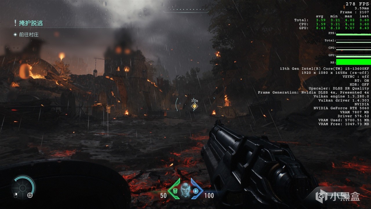開啓DLSS4多幀生成後,可以來到278幀,幀生成時間爲3.59ms.