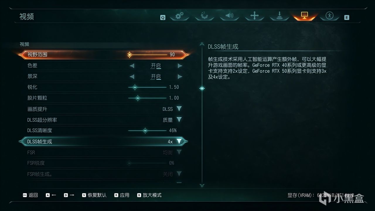 由於RTX5060只有8G顯存,開啓更高紋理層會爆顯存,就開啓中畫質把紋理拉下來。