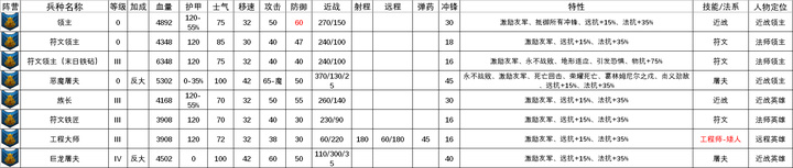 ·工程大師【主力級】:遠程事務官,矮人遠程體系的核心單位,除了自身擁有湊合的遠程輸出能力之外,能爲遠程部隊提供大量全隊加成,因此能極大地提升矮人遠程部隊的強度上限;幾乎是矮人後期必帶,且戰略作用最大的事務官。
