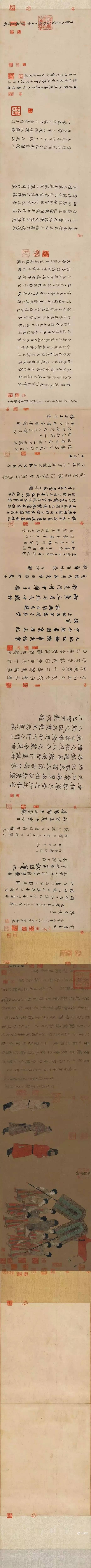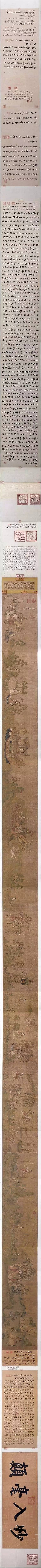 百骏图:纸质,102×813厘米,现藏于台北故宫博物院,为意大利人郎世宁所作。郎世宁于1715年以传教士的身份远涉重洋来到中国,被重视西洋技艺的康熙皇帝召入宫中,从此开始了长达五十多年的宫廷画家生涯。《百骏图》是他的代表作之一。全卷色彩浓丽,构图复杂,别具意趣。