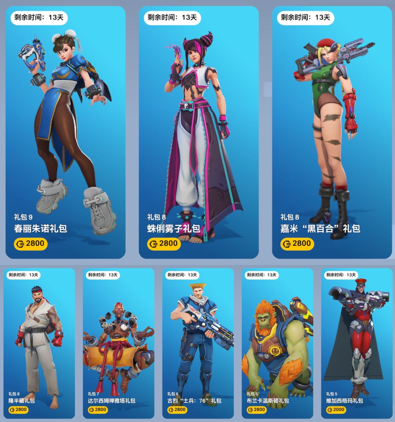 1禮包5900金幣:達爾西姆 - 禪雅塔,春麗 - 朱諾,隆-半藏,維加 - 西格瑪