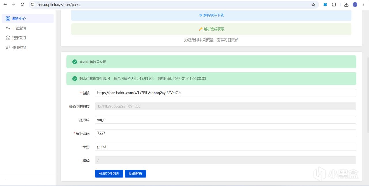 進入網站後將鏈接複製進去,網站會自動識別並填寫,然後點擊下方的獲取文件列表