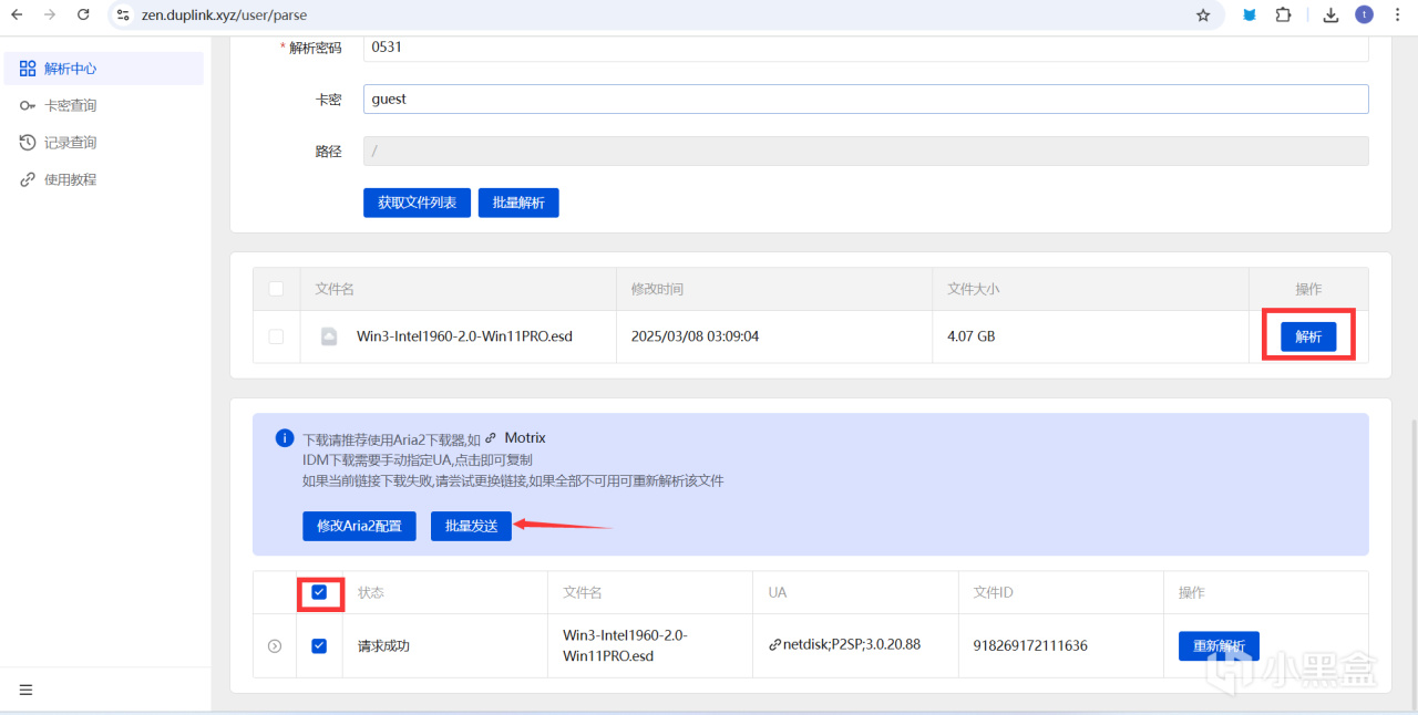 點擊解析出文件後的解析,如果Motrix沒有收到可以點擊下方的批量發送重試
