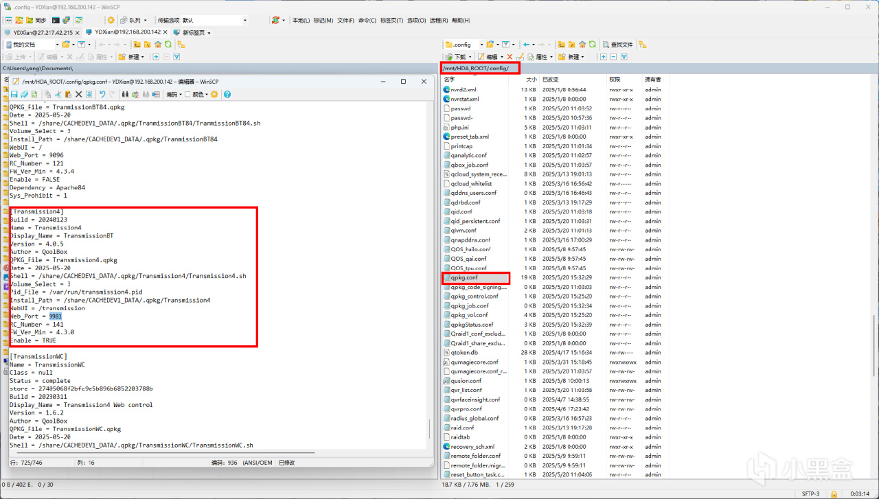 接着再找到以下文件进行端口的最后修改。mnt/HDA_ROOT/.config下找到qpkg.conf。
