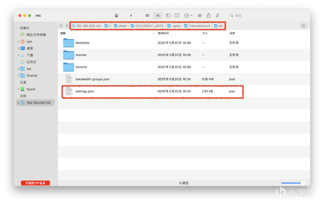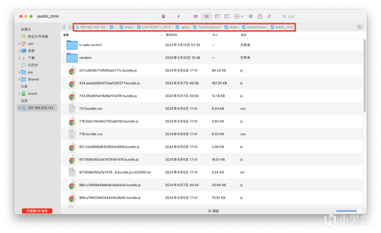 我用的macOS演示,猫头鹰连接上NAS,找到.qpkg目录下。定位到下图所示的位置。