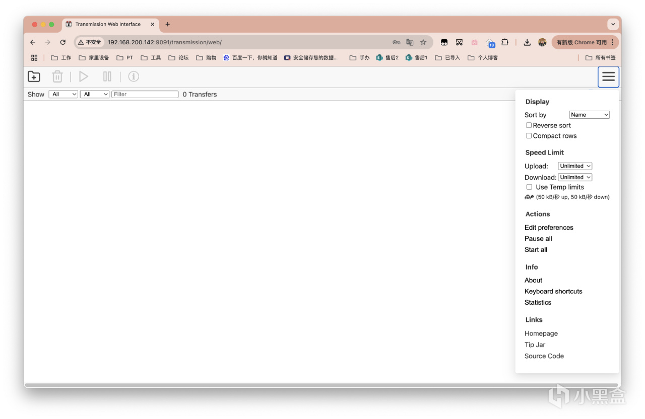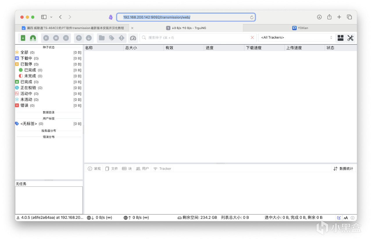 等待重新创建完毕后,再次刷新Transmission的访问界面,重新输入账户名+密码,即可得到汉化后的全新UI。
