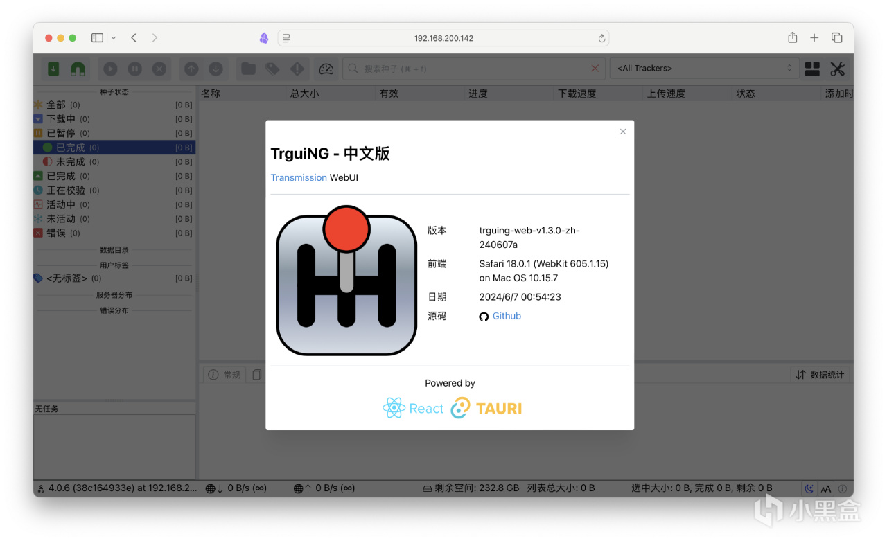 与QB不同,Transmission需要提前准备一个汉化包,去GHUB进行下载名为trguing-web-xxxx-zh.zip的压缩包文件。解压后重新命名为trguing-zh备用。链接参考下图。