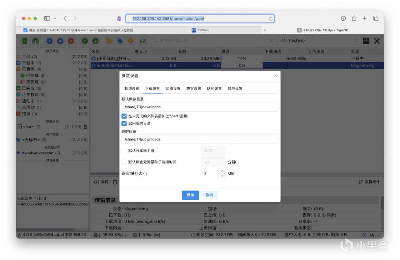 这两种可能对于咱们NAS用户来说是最为常用的两款PT下载工具,两者选其一来使用即可。QB更高级功能更多,TR用起来也许省心些,但两者都有需要折腾的地方,综合来讲QB的用户群体以及攻略更多。