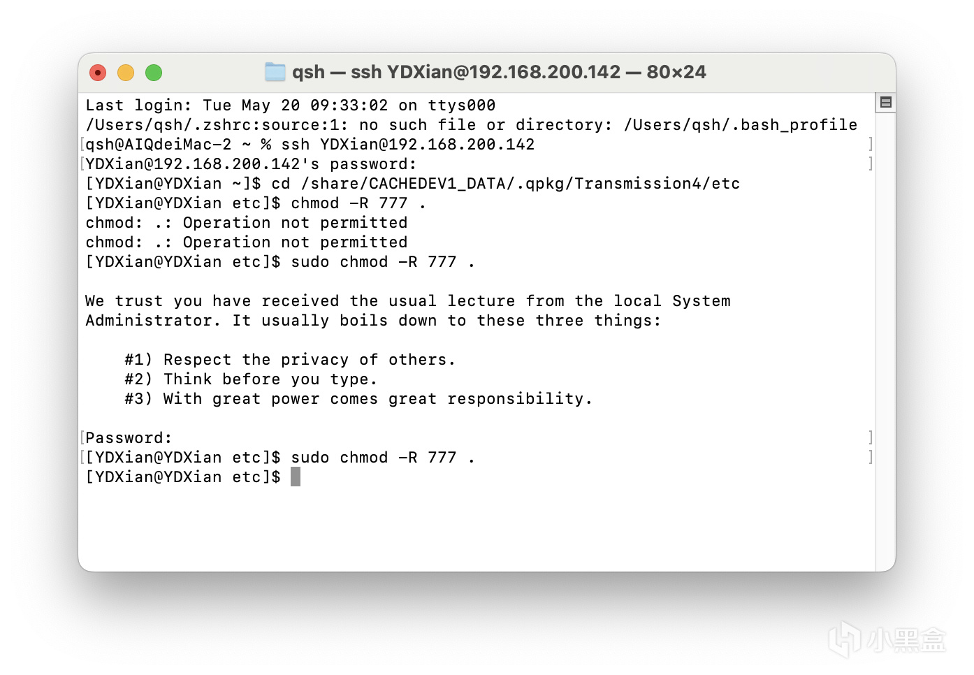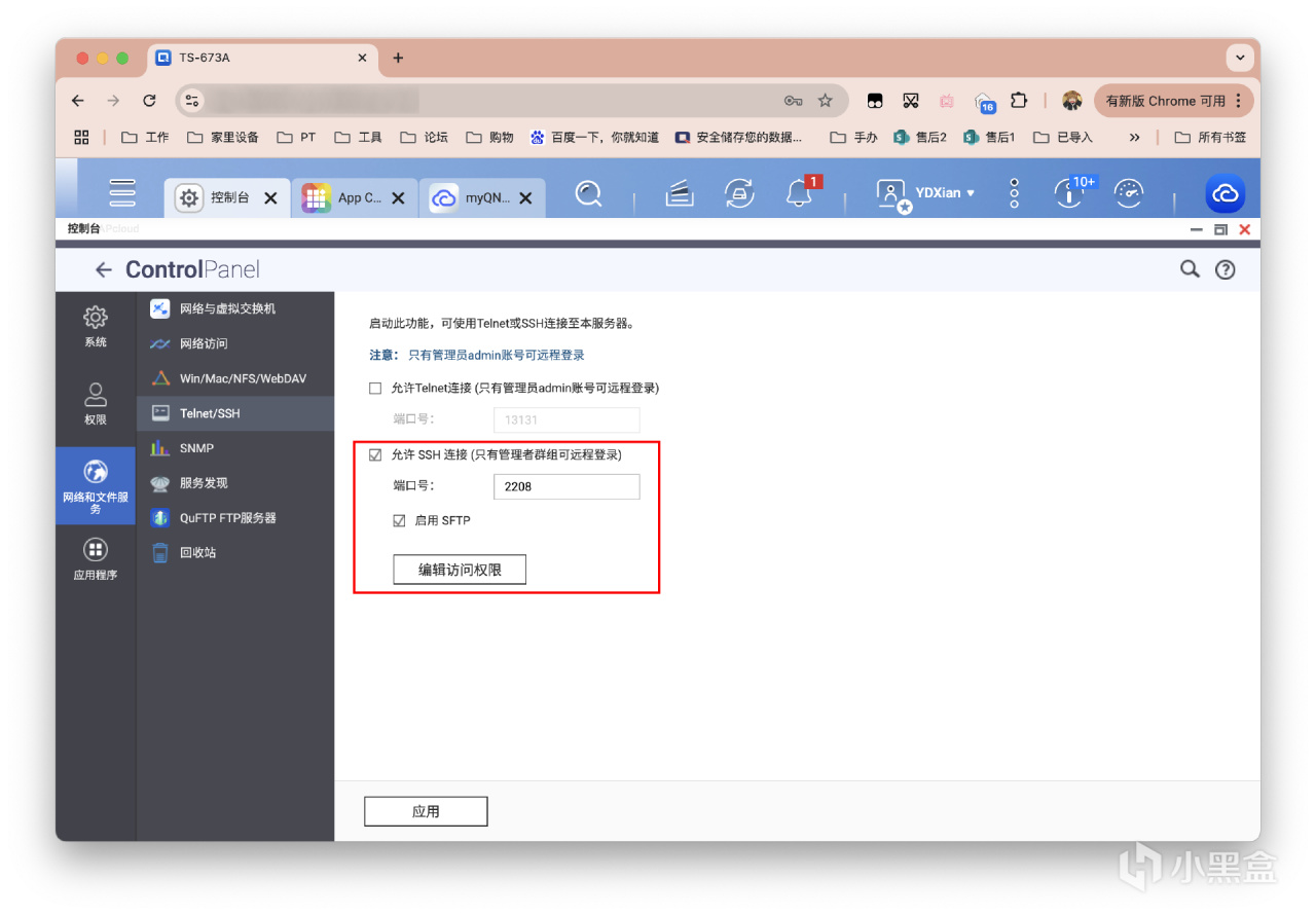 SSH 连接NAS,输入命令,赋编辑权限
