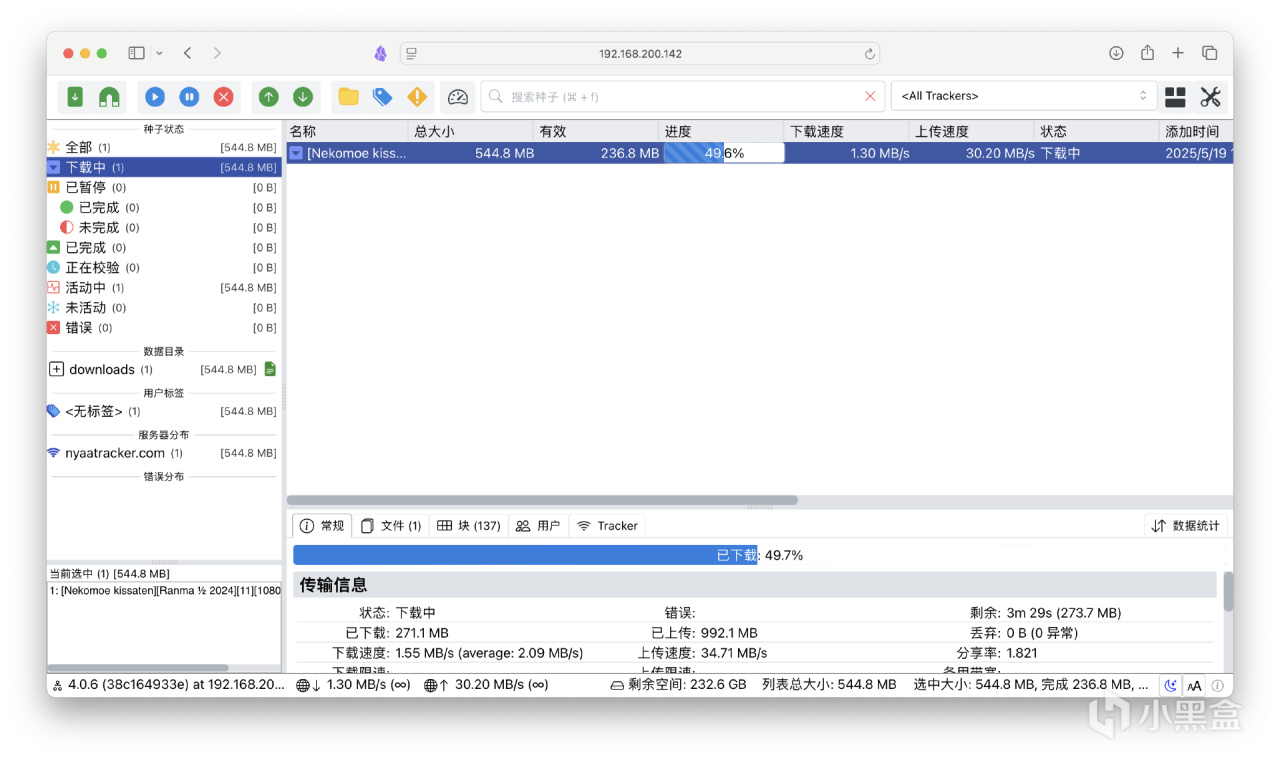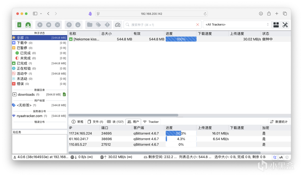 进行下载测试,下载保种完全没毛病~