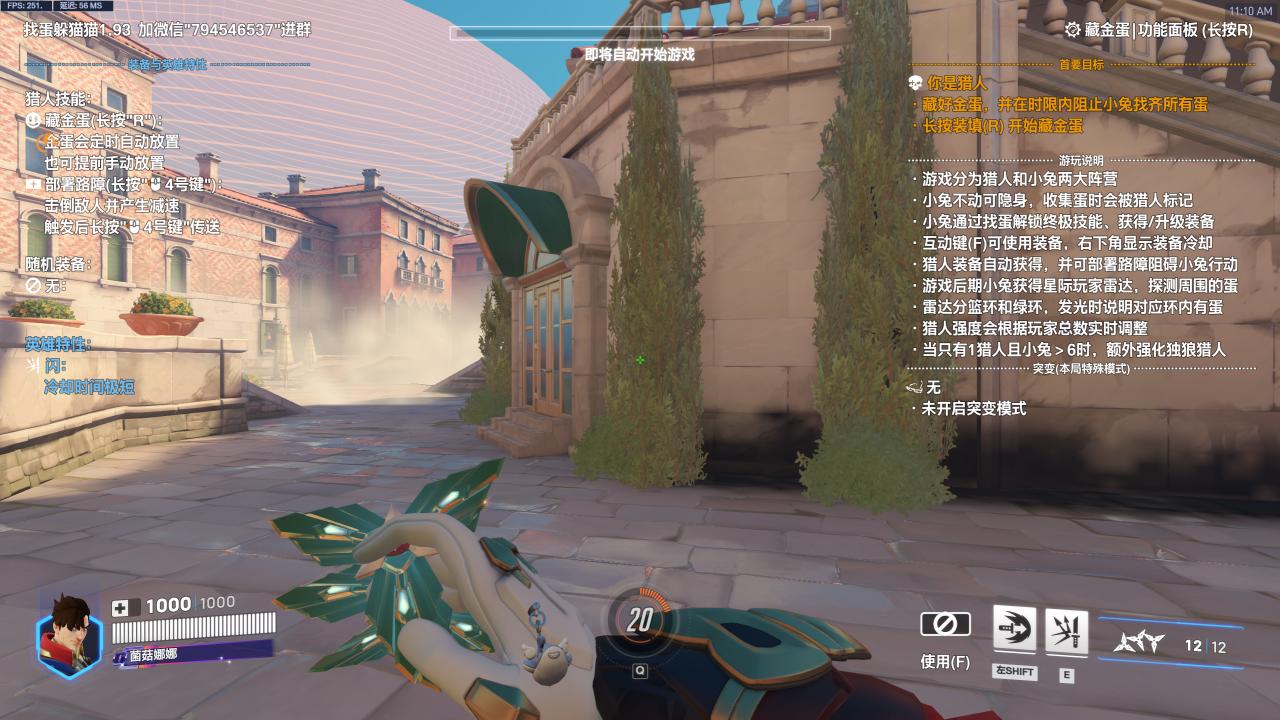 模式内有小兔和猎人两个阵营,小兔的获胜目标是找齐地图中的银蛋和猎人藏的金蛋,猎人的获胜目标是藏好金蛋和阻止小兔找蛋,每个英雄都有特殊的技能强化或调整