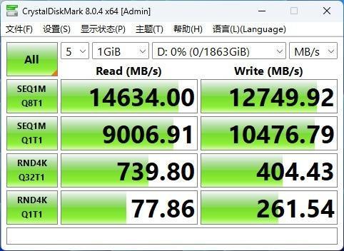 pcie4.0的盘顺序读取速度7450MB/s,顺序写入速度6900MB/s,采用三星原厂V-NAND颗粒。