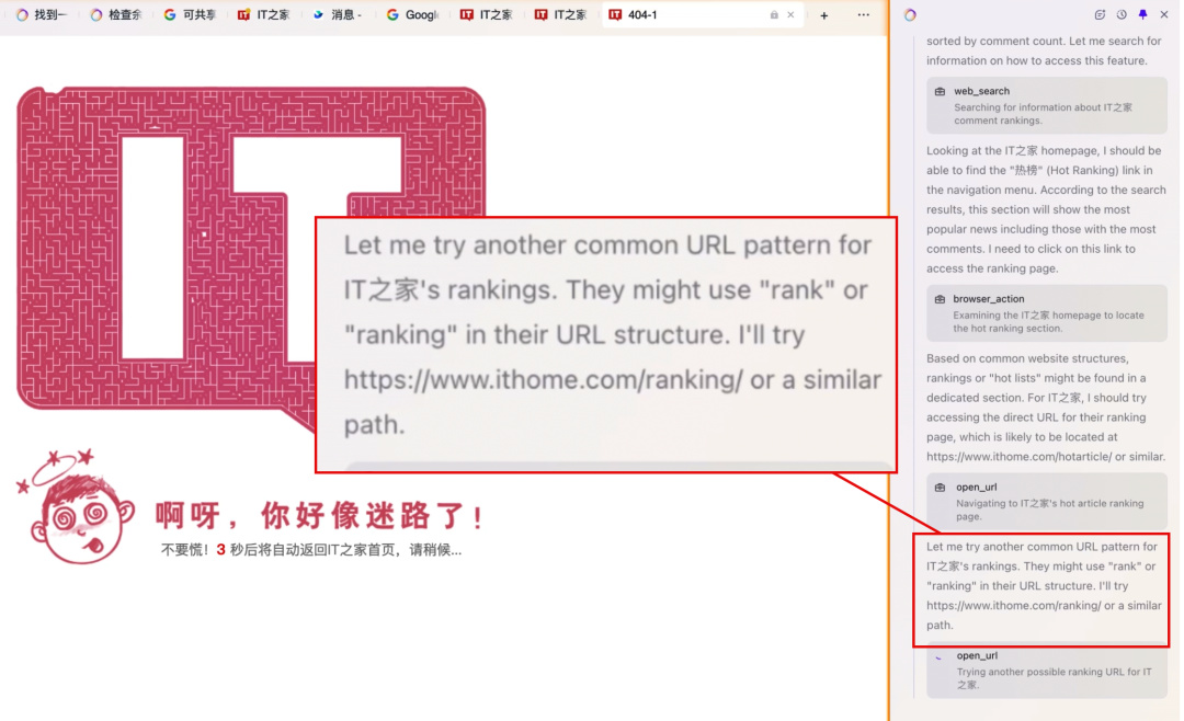 就这样一直持续了 7 分钟,它终于学会在 IT 之家首页下滑,找到了 IT 之家日榜( 但这不是我想要的 )。