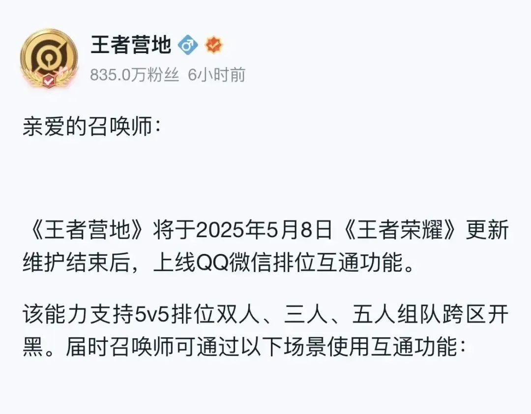 最近,騰訊公司便拋出一則重磅消息。《王者榮耀》實現了重大更新,不僅達成了QQ與微信賬號的互通,而且首次開放了排位互通。玩家現在能夠通過雙排、三排、五排的方式實現跨區組隊。
