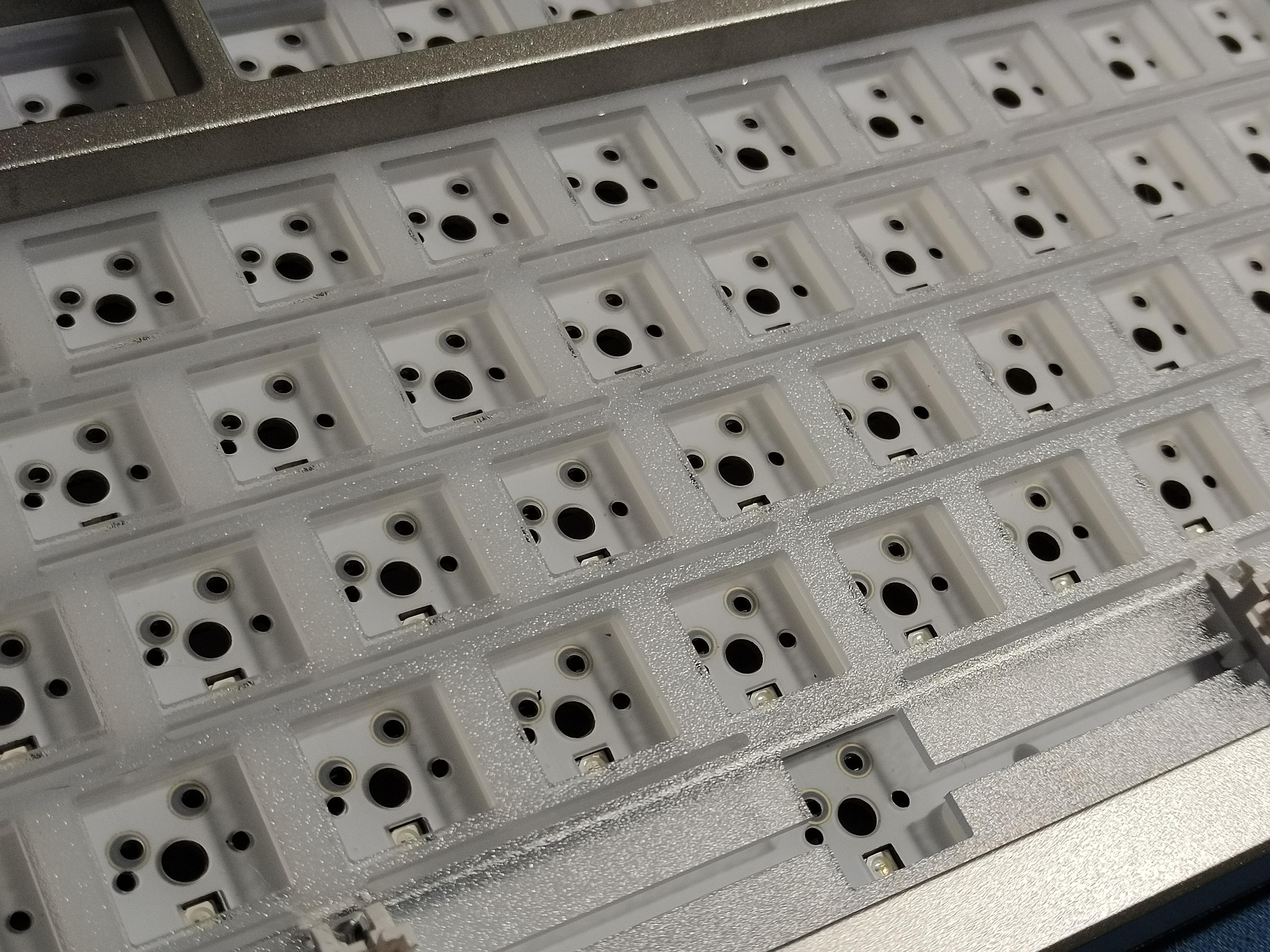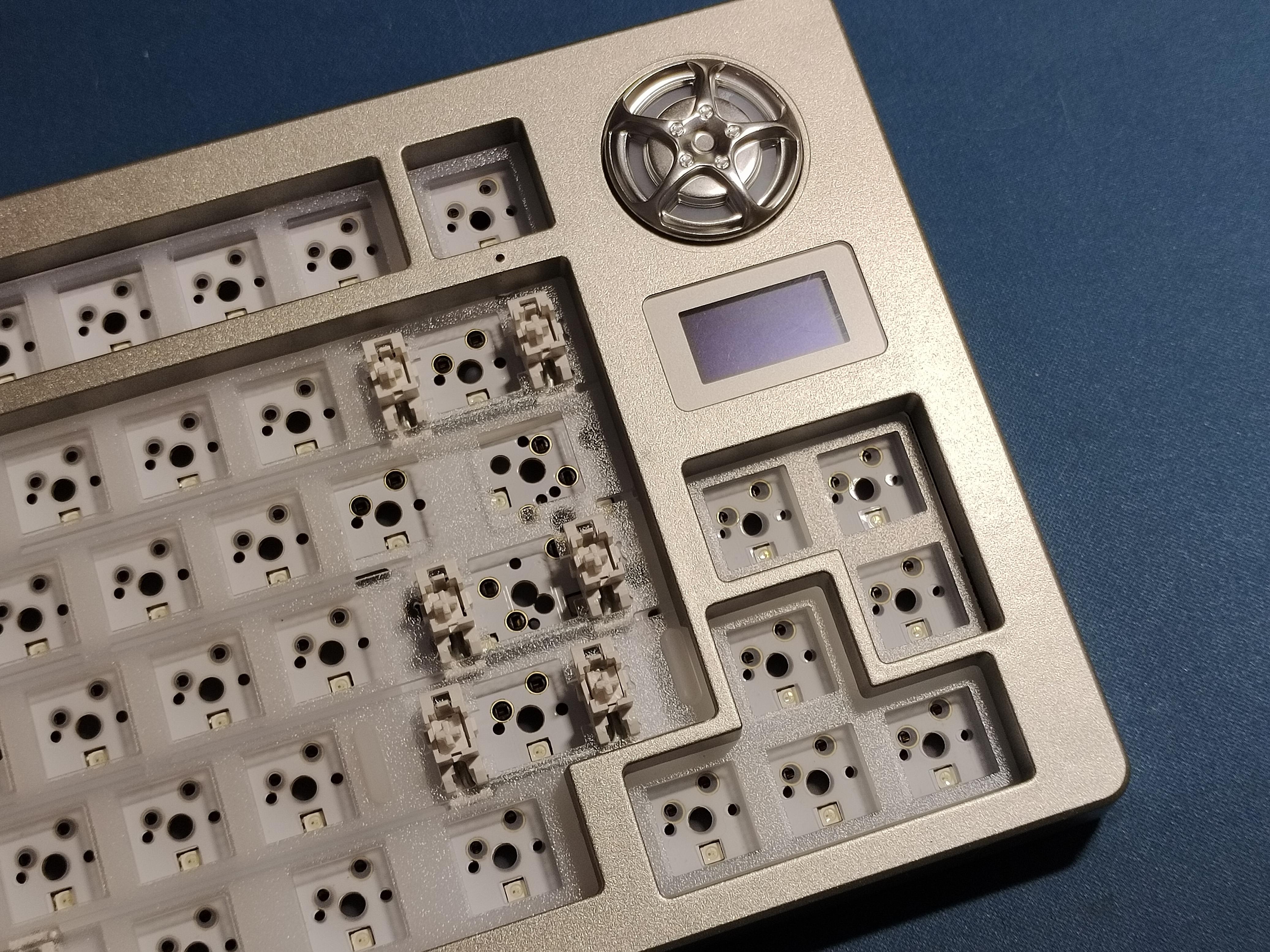 鍵盤內部的填充皆爲硅膠,有着比較特殊帶有小硅膠立柱的底棉,以及夾心棉軸下墊一體硅膠墊。