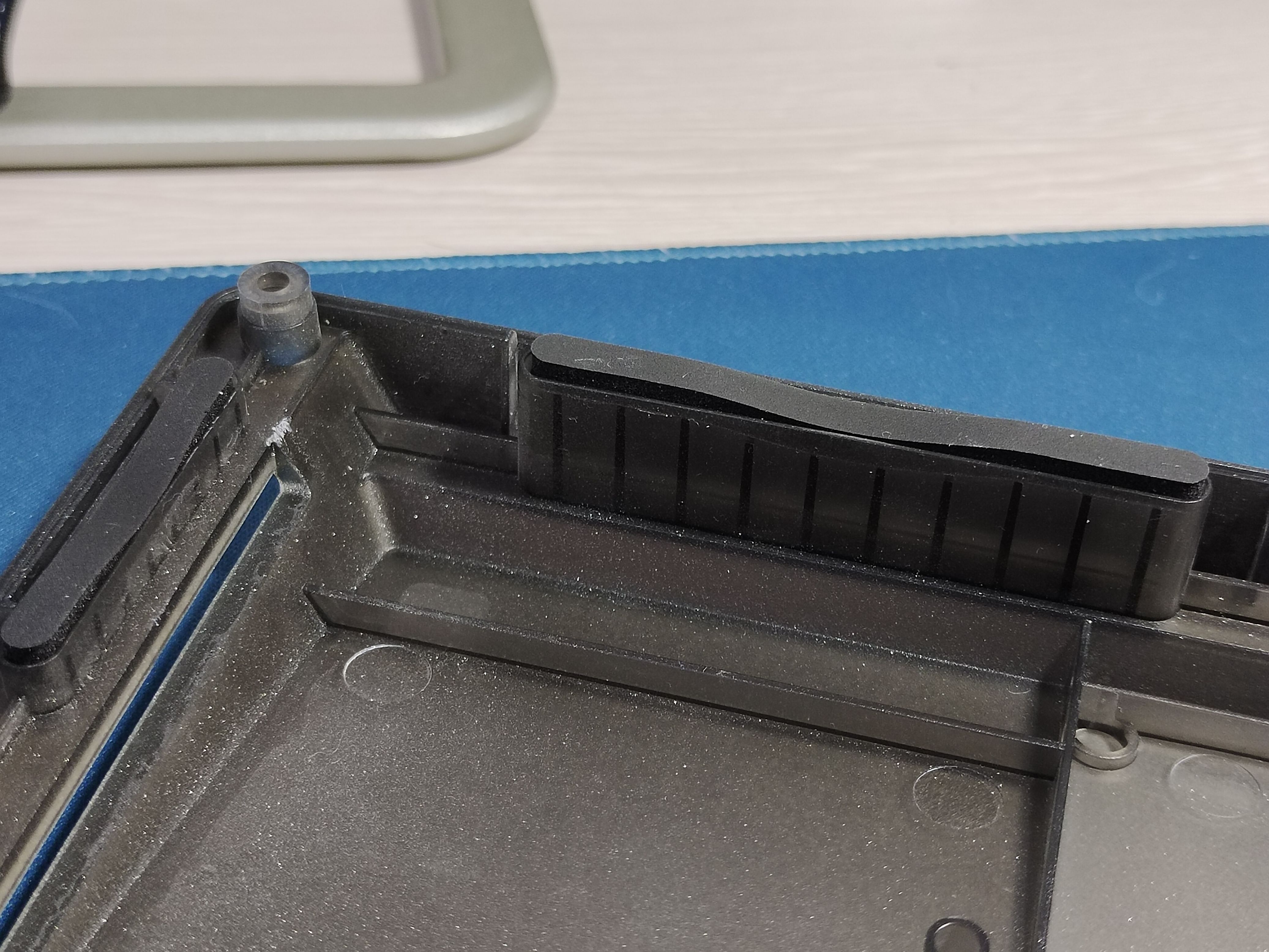 其gasket結構很有意思,poron棉條中段內凹,僅兩端接觸定位板上的彈力臂。從而給鍵盤觸底帶來了舒適的軟彈手感。