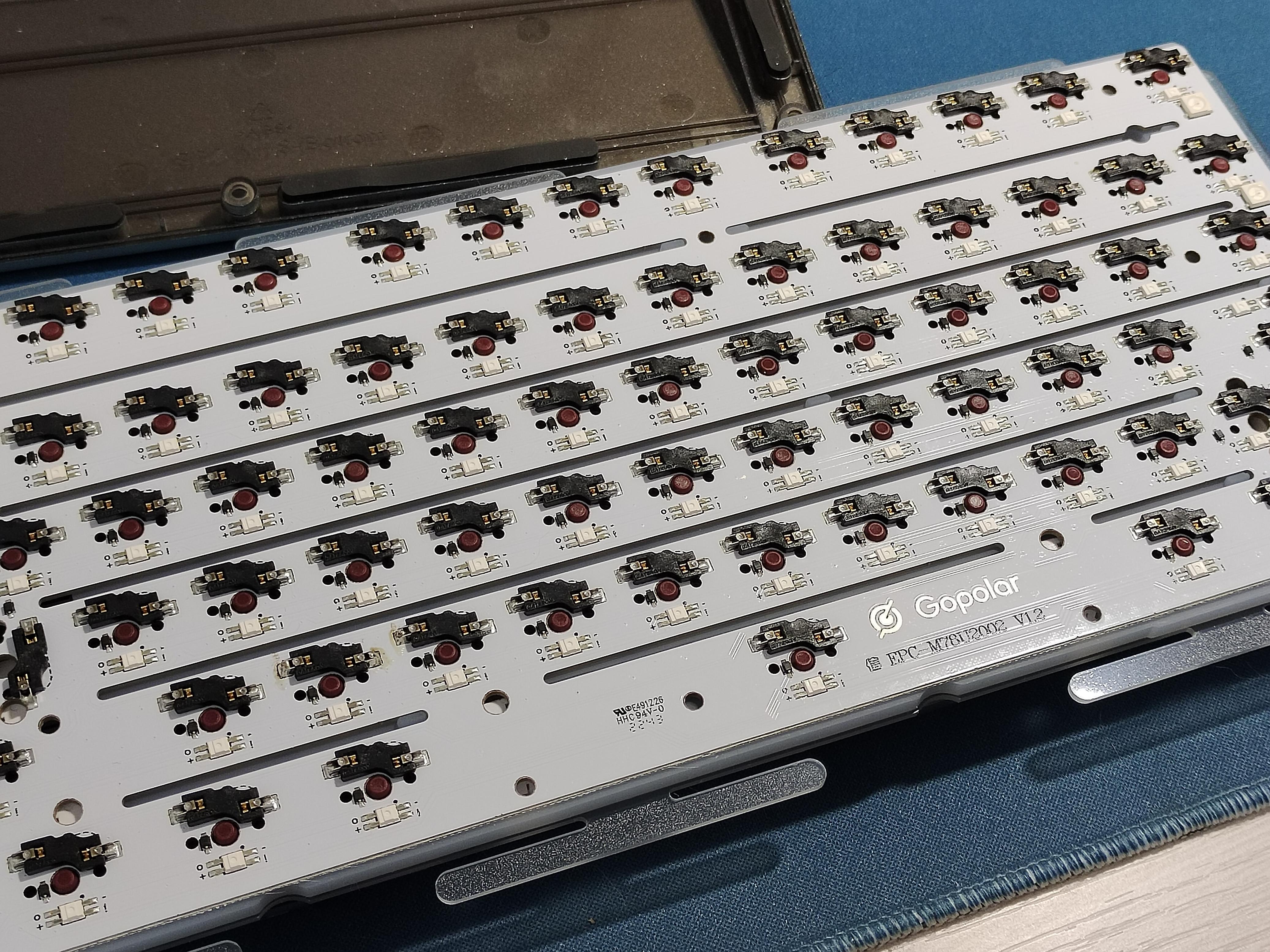 除此之外,pcb,定位板的開槽設計一清二楚,因爲pcb開槽加燈光需要更多層數的pcb板,並且因爲燈珠會隨形變而受影響,因此會大大降低成品率,從而增加成本。但是其對聲音一致性獨立性以及軟彈有不小的加成,因此這點確實不錯。