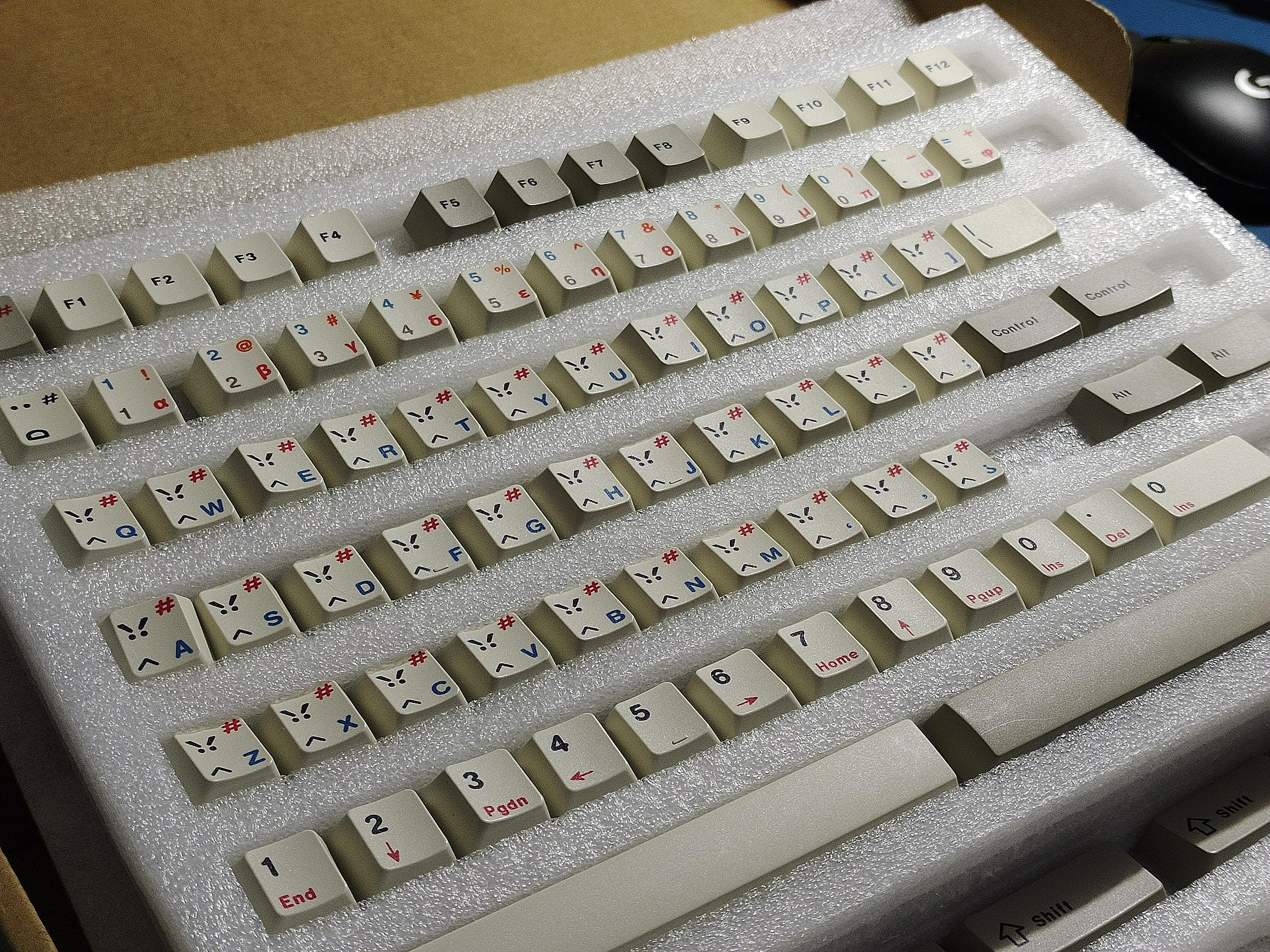 裝好之後安裝鍵帽,我這裏使用的是星河山川的復古鍵帽,復古鍵帽和銀軸相當搭配,觀感腳好。