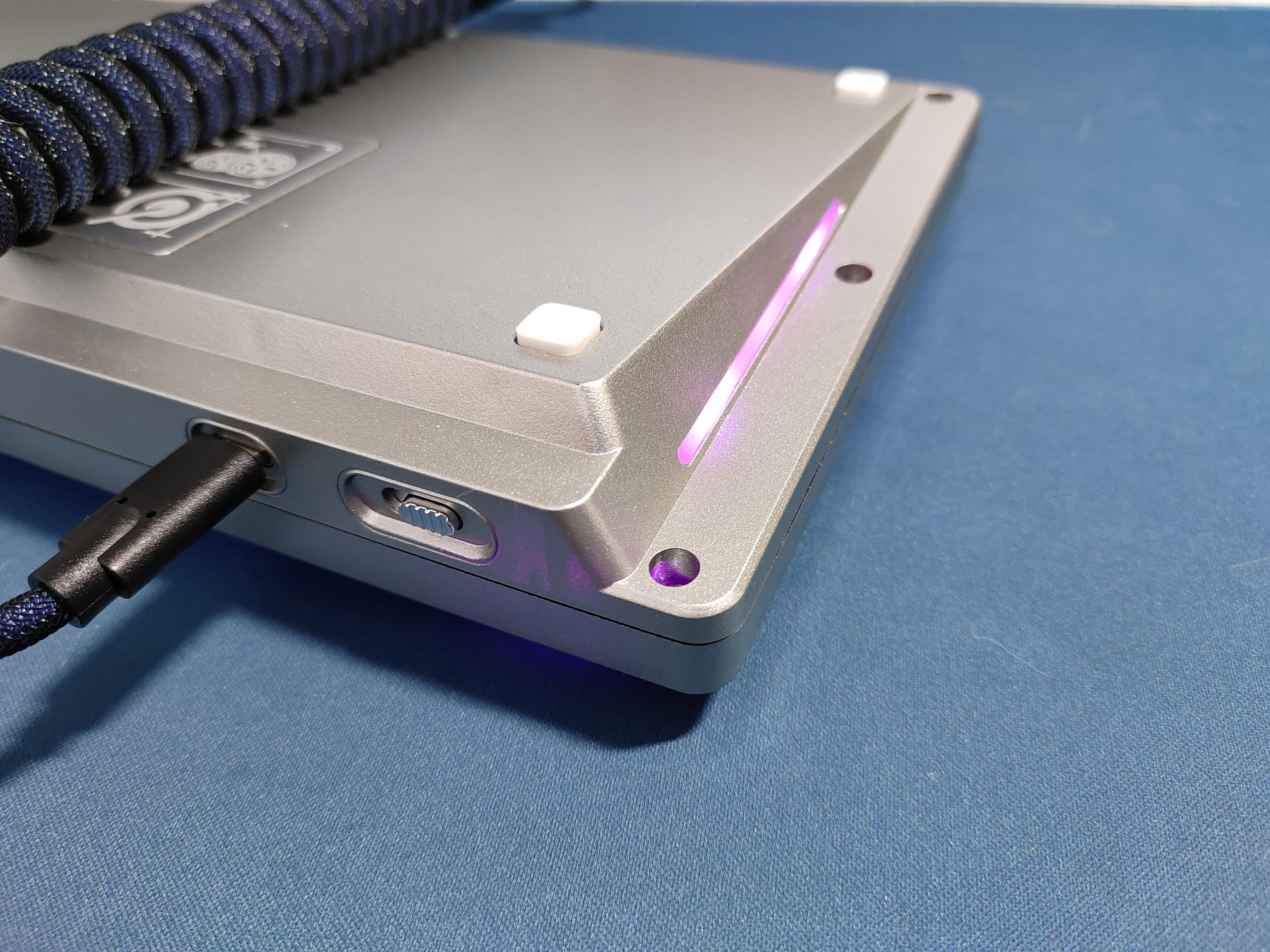側邊是利用硅膠底棉做的導光條,黑暗環境下側邊的流光可以照亮鍵盤側邊。
